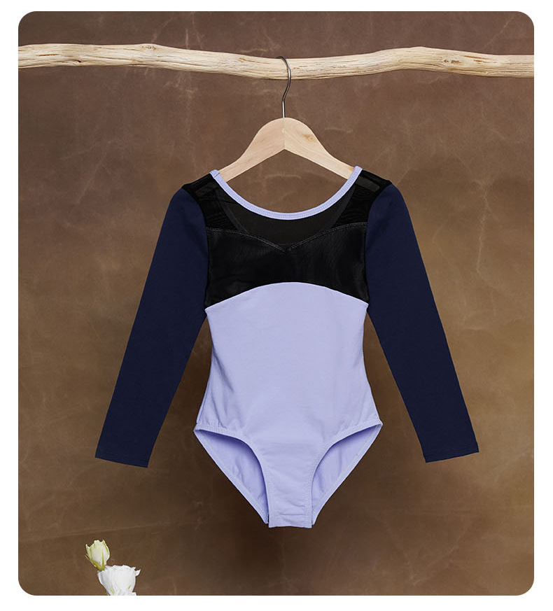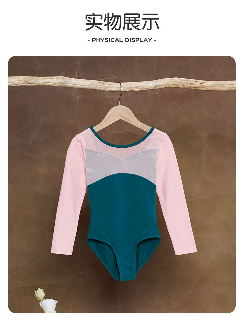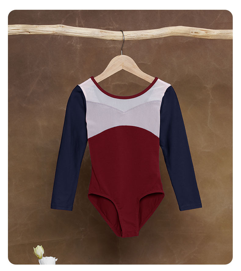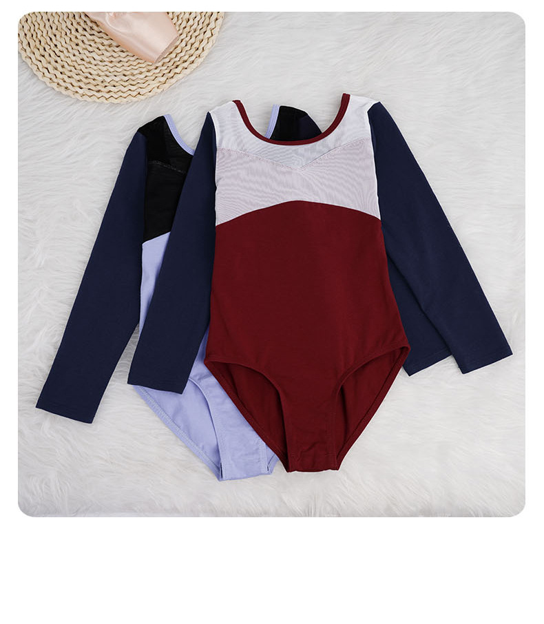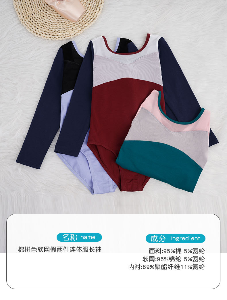 Traje de baile para niños Traje de entrenamiento de manga larga de primavera para mujer Traje de gimnasia de dos piezas falso Traje de ballet con costuras de color en contraste Traje de rendimiento