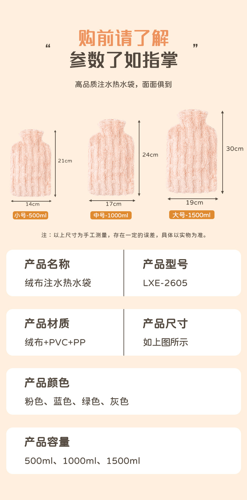 Botella de agua caliente, inyección de agua, juego de tela de felpa, calentador de manos de agua, bolsa de agua caliente de pvc de riego de gran capacidad, estómago caliente al por mayor