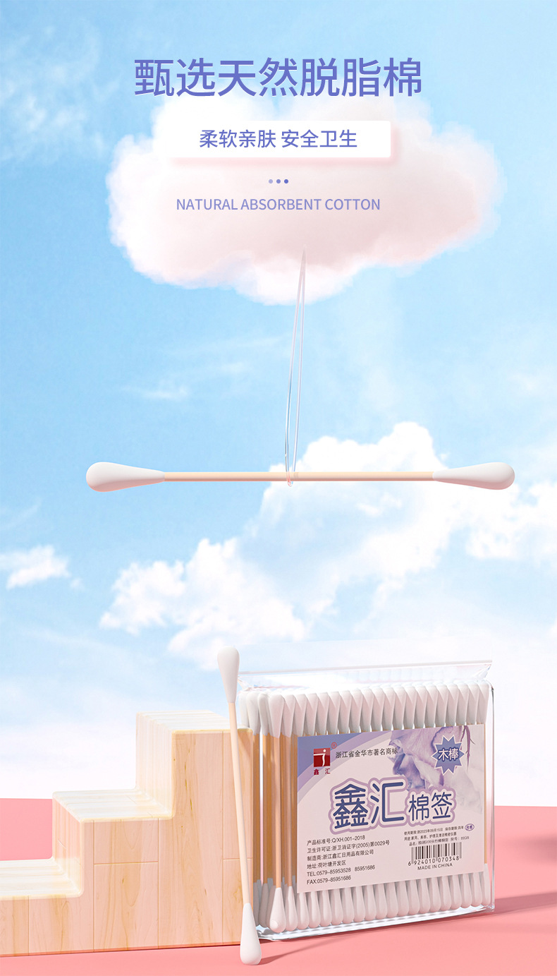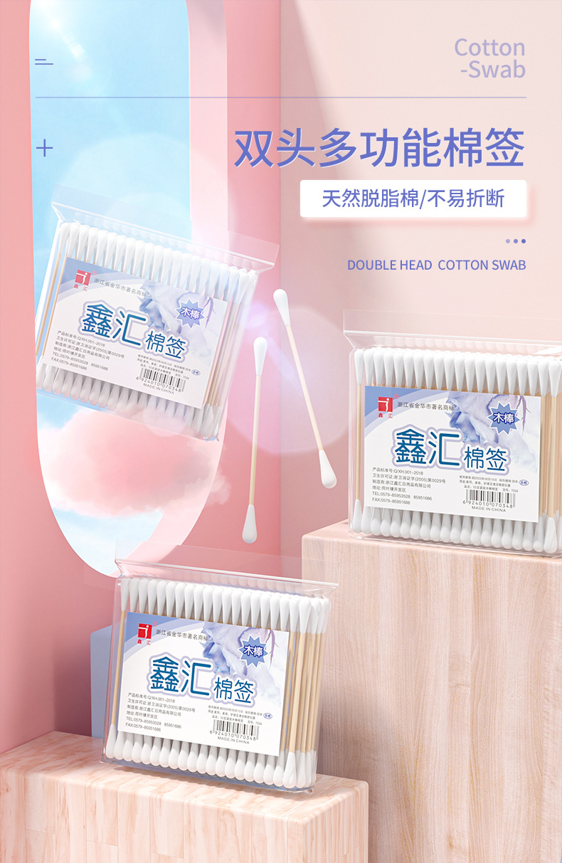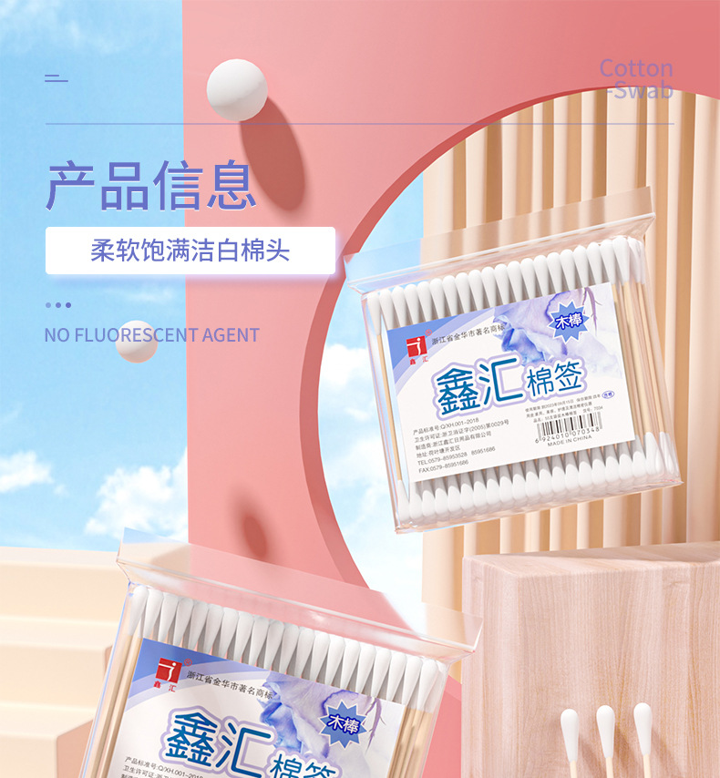 Hisopo de algodón blanco hisopo de algodón desechable Hisopo de algodón de 200 cabezas caja de plástico cabeza de algodón de doble cabeza algodón cosmético