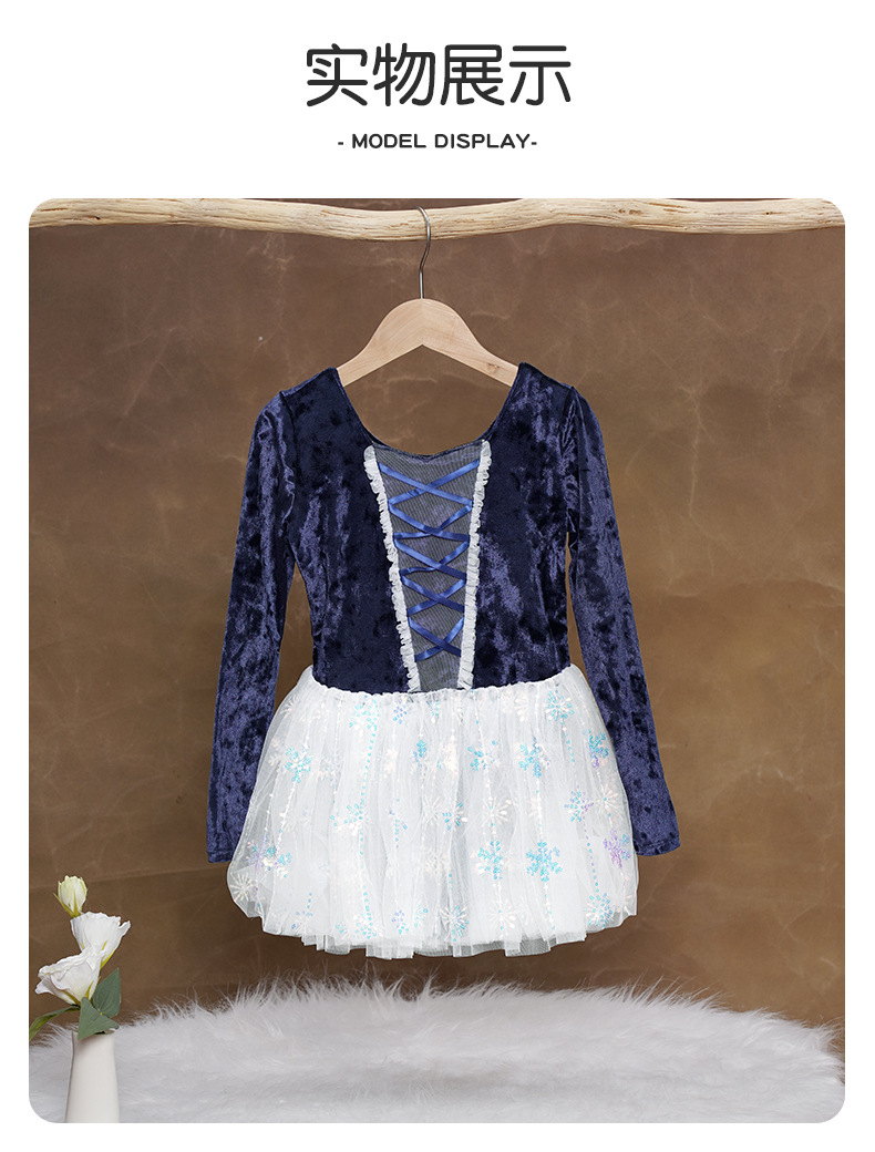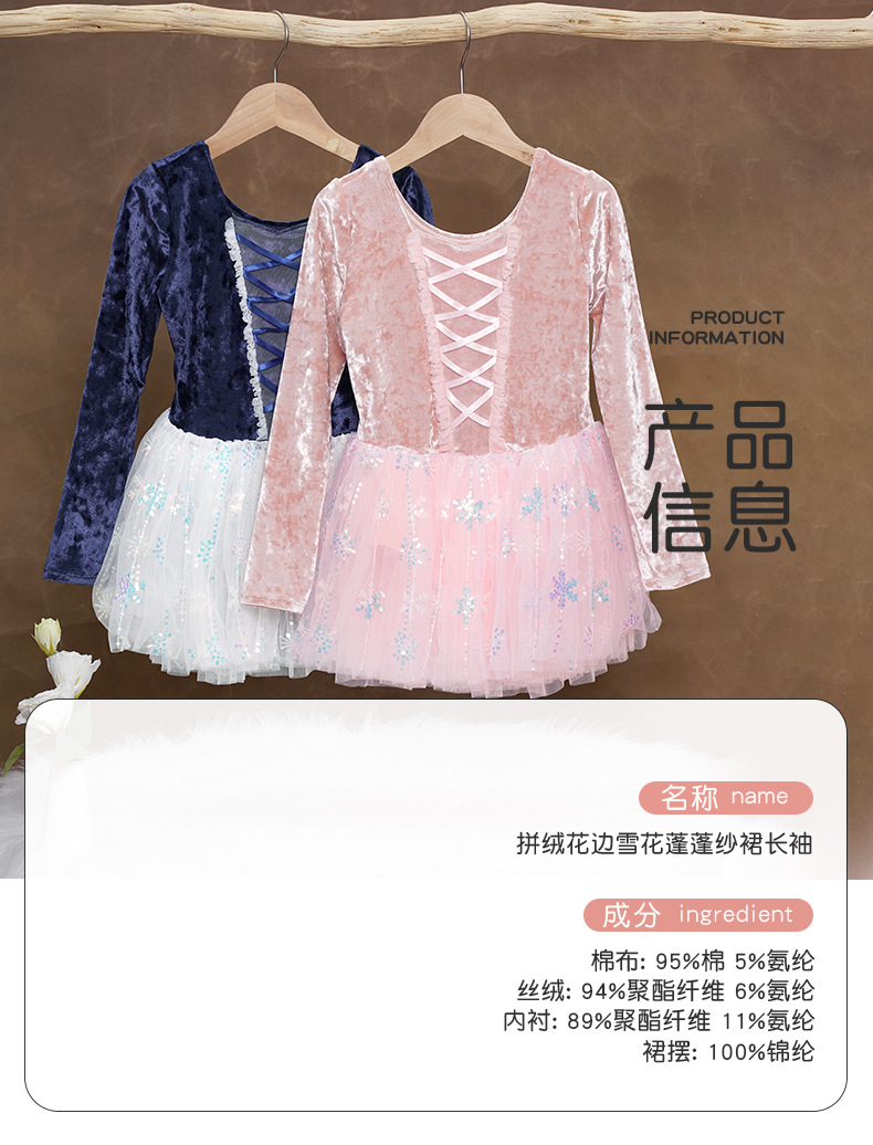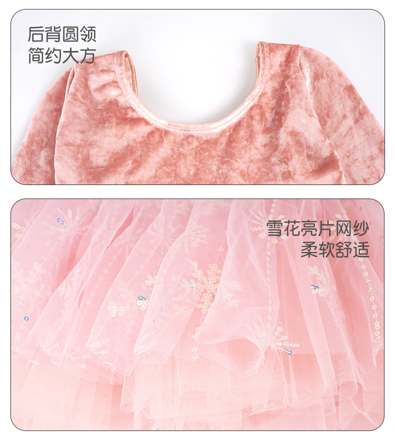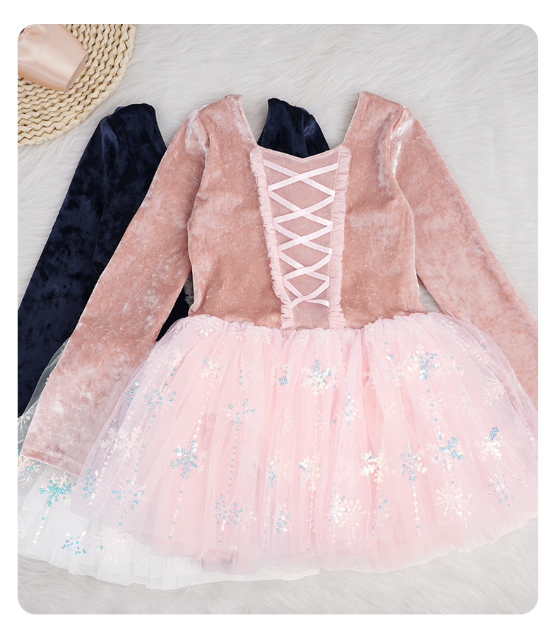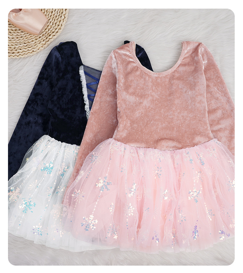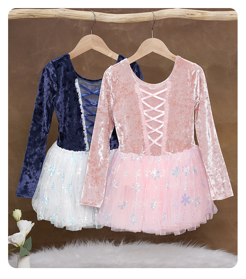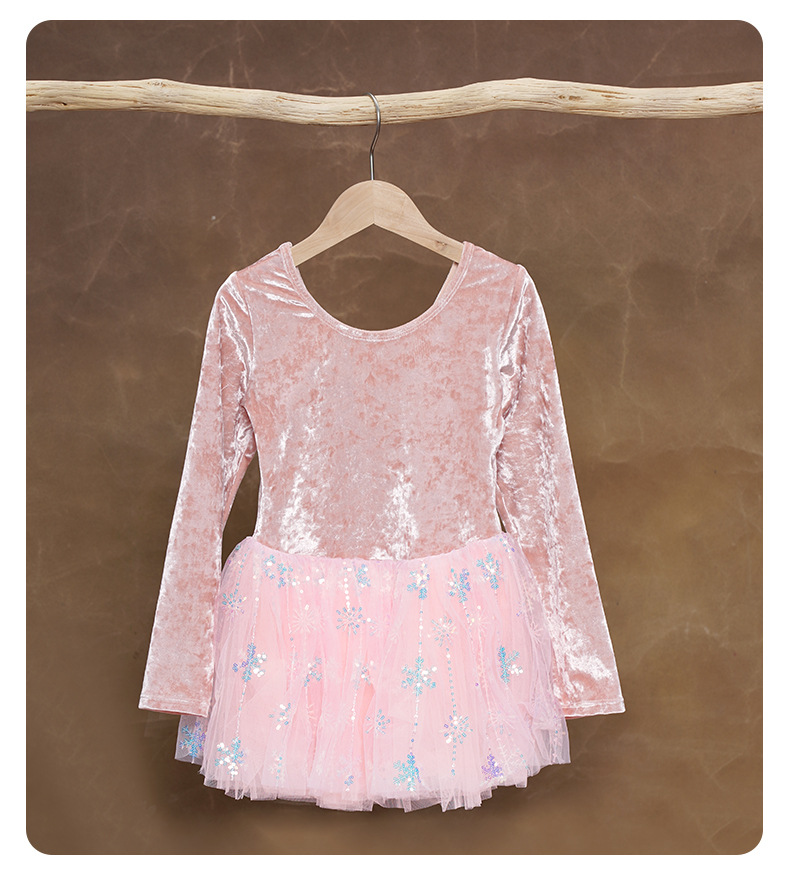 Ropa de baile para niños, falda de gasa hinchada con copo de nieve, terciopelo de otoño e invierno, traje de ballet de manga larga, ropa de actuación, ropa de práctica