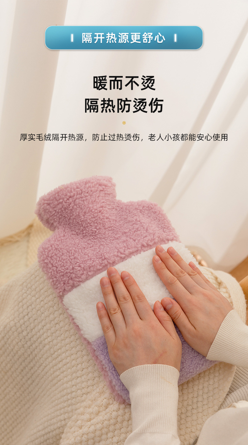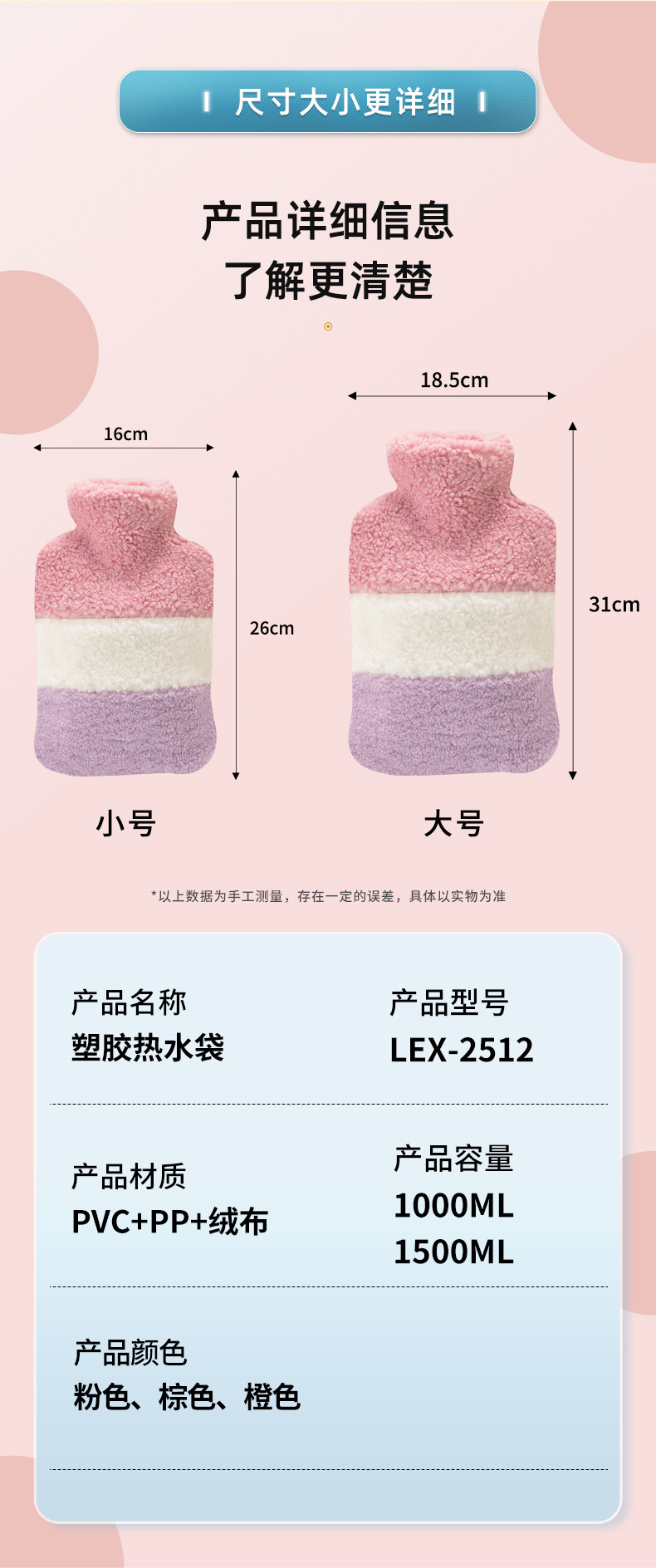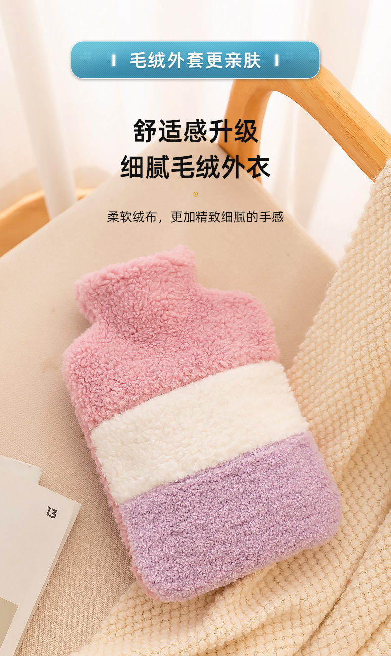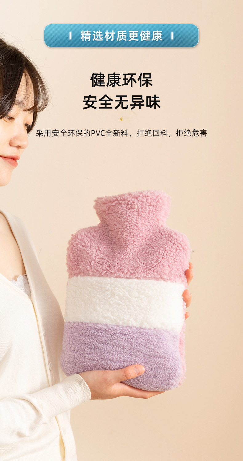 Lescher bolsa de agua caliente inyección de agua hogar a prueba de explosiones de tres colores cubierta de tela de felpa gran riego PVC bolso caliente al por mayor
