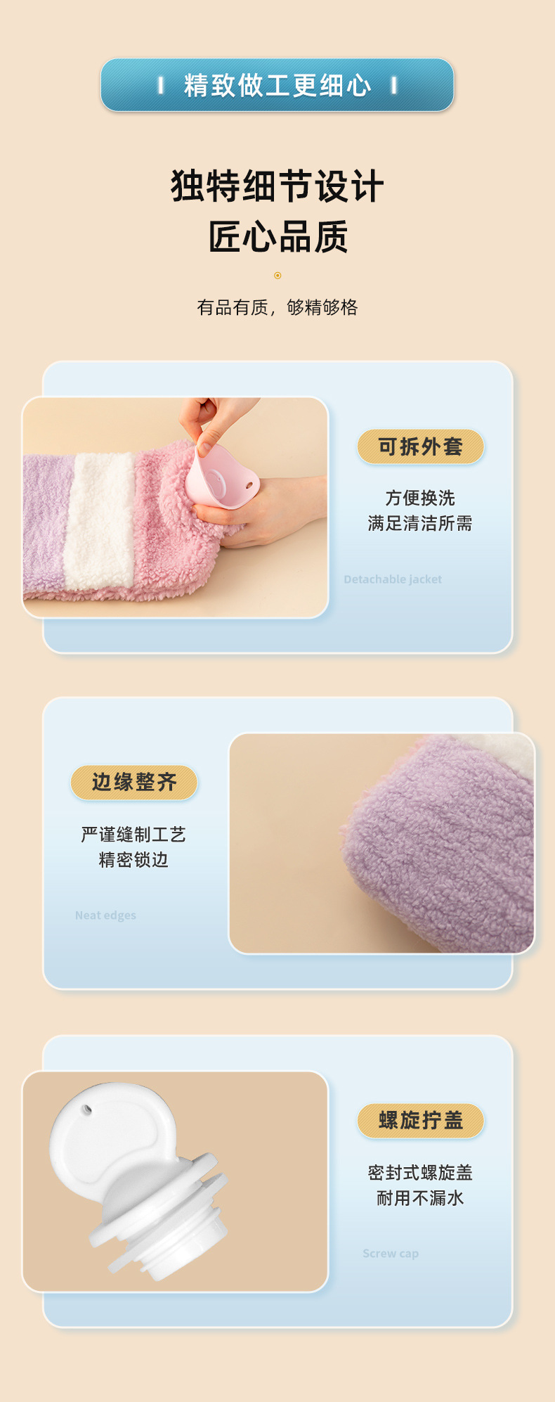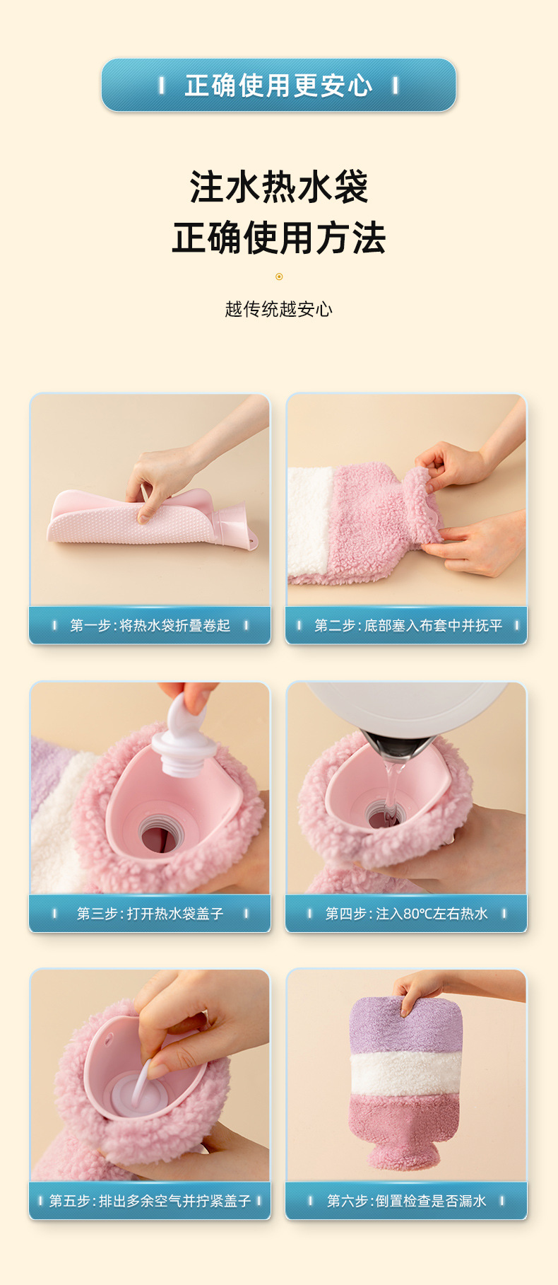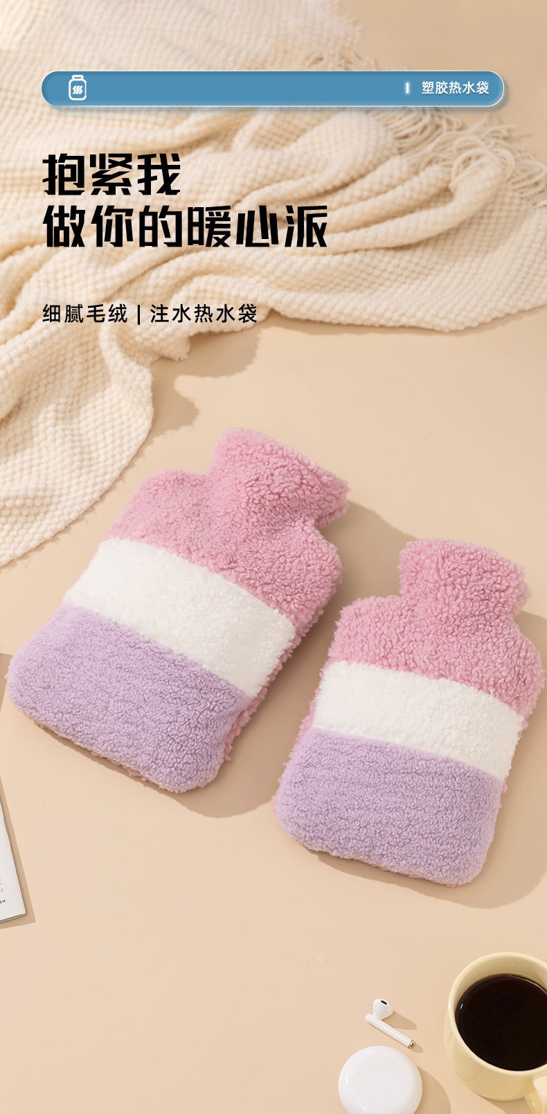 Lescher bolsa de agua caliente inyección de agua hogar a prueba de explosiones de tres colores cubierta de tela de felpa gran riego PVC bolso caliente al por mayor