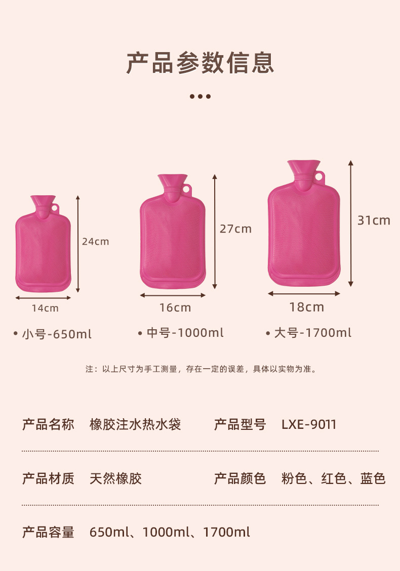 Le Xueer botella de agua caliente de caucho natural riego grande bolsa de agua caliente antigua preservación del calor de larga duración bolsa de calentador inyección de agua al por mayor