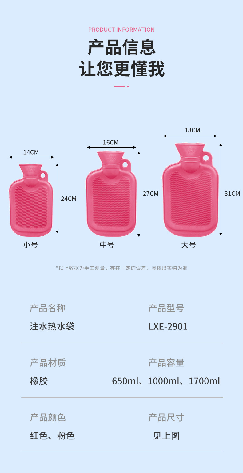 Lexuerer goma bolsa de agua caliente inyección de agua hogar a prueba de explosiones gran capacidad de riego compresa caliente anticuado bolsa de agua caliente con orejas al por mayor