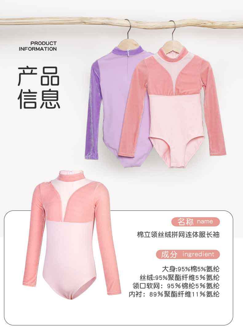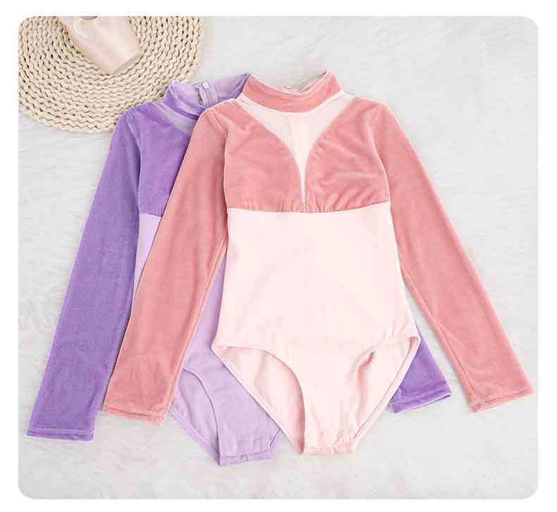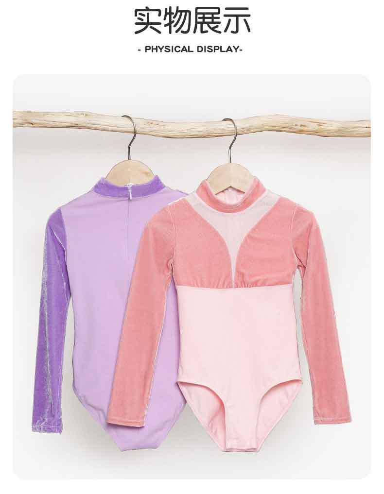 Ropa de baile Ropa de entrenamiento de terciopelo de manga larga de otoño e invierno para niñas y niños Ropa elegante de actuación de cuello alto Ropa corporal para niños