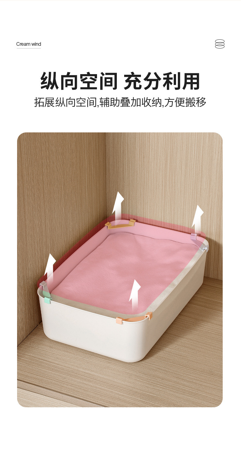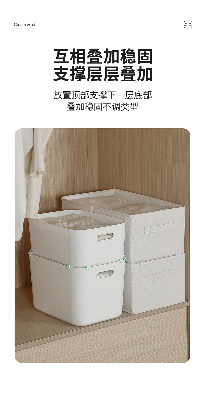 Nueva caja de almacenamiento superpuesta tablero de soporte en capas artefacto escritorio armario almacenamiento de ropa acabado armario almacenamiento canasta