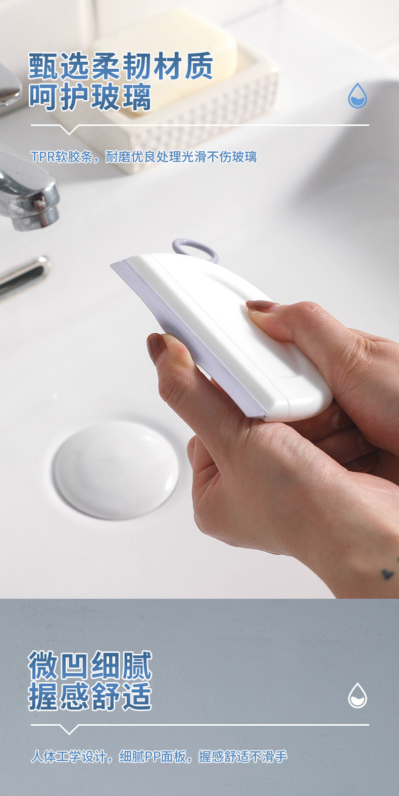 Pequeño raspador de agua artefacto de limpieza de vidrio de baño herramienta de limpieza de silicona lavabo de baño mini raspador de agua