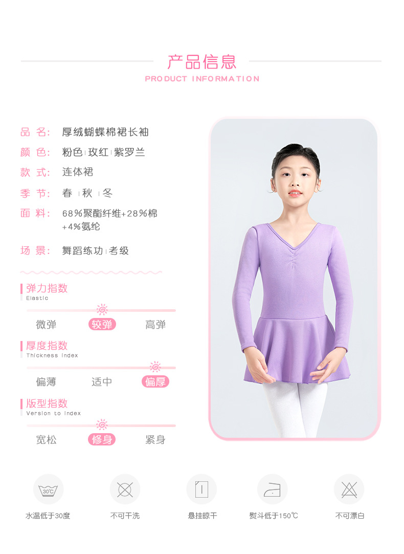 Ropa de baile para niñas, mangas largas de una pieza sin cachemira, ropa de práctica para niños de otoño e invierno, ropa de actuación, ropa de forma gruesa de terciopelo