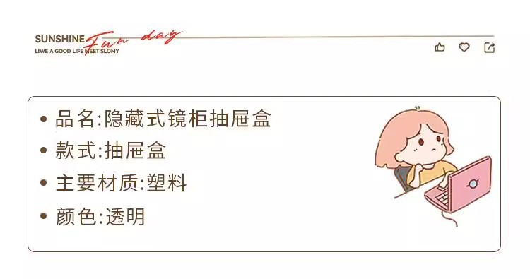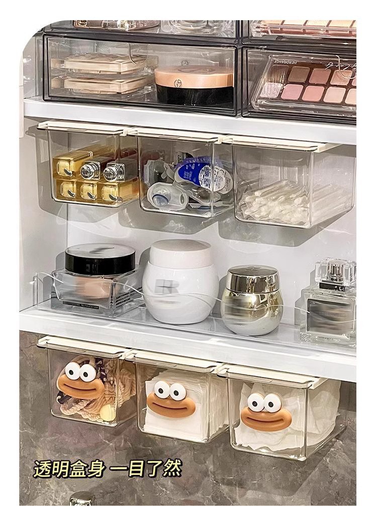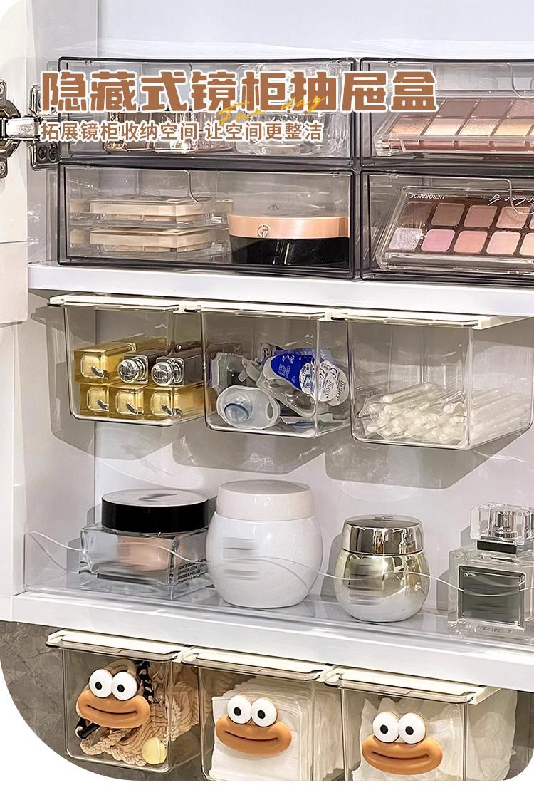 Gabinete de espejo caja de almacenamiento tipo cajón baño transparente simple hisopo de algodón almohadilla de algodón gabinete de baño estante extraíble