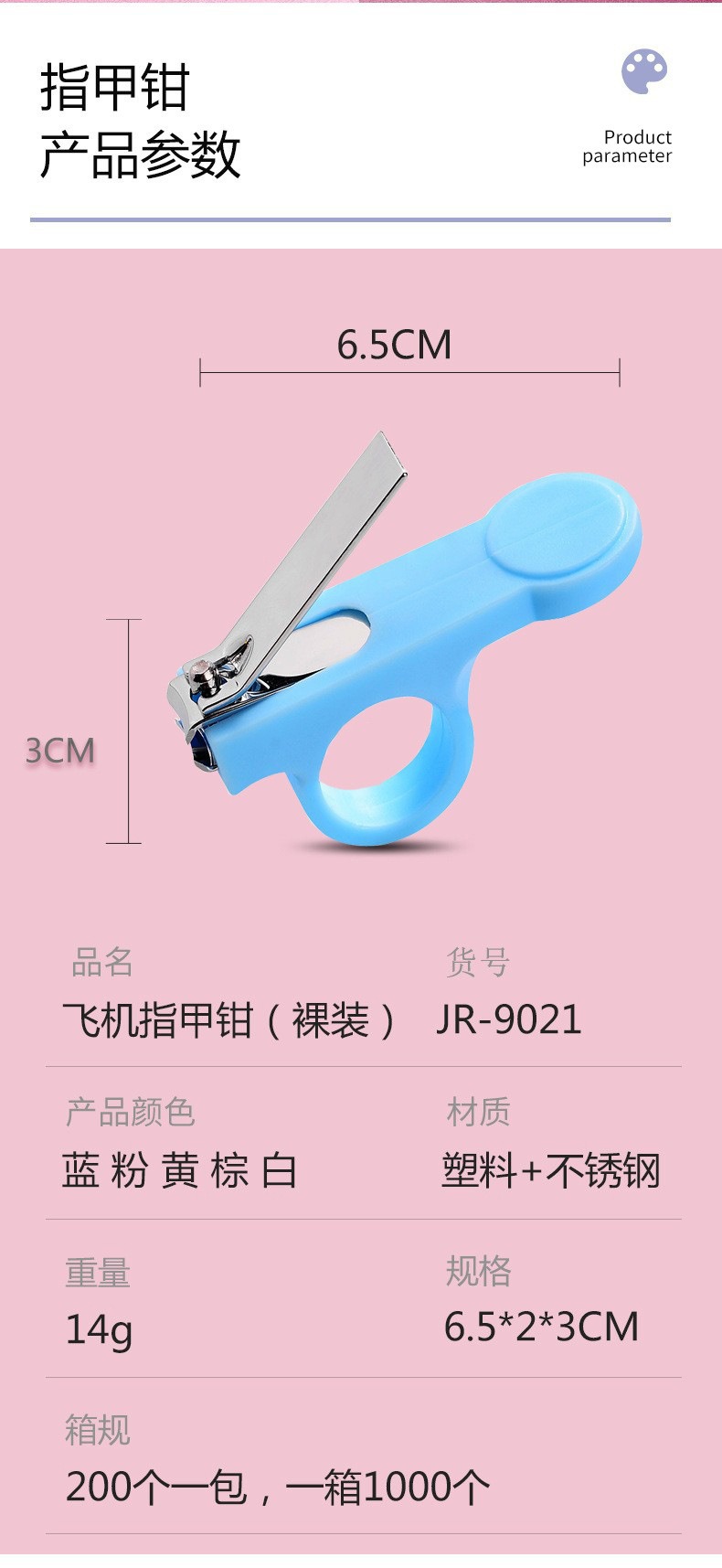 【尺寸】指甲钳尺寸 6.5*3.2*2cm 200一包,一箱1000个。