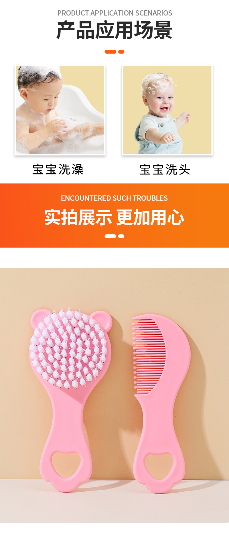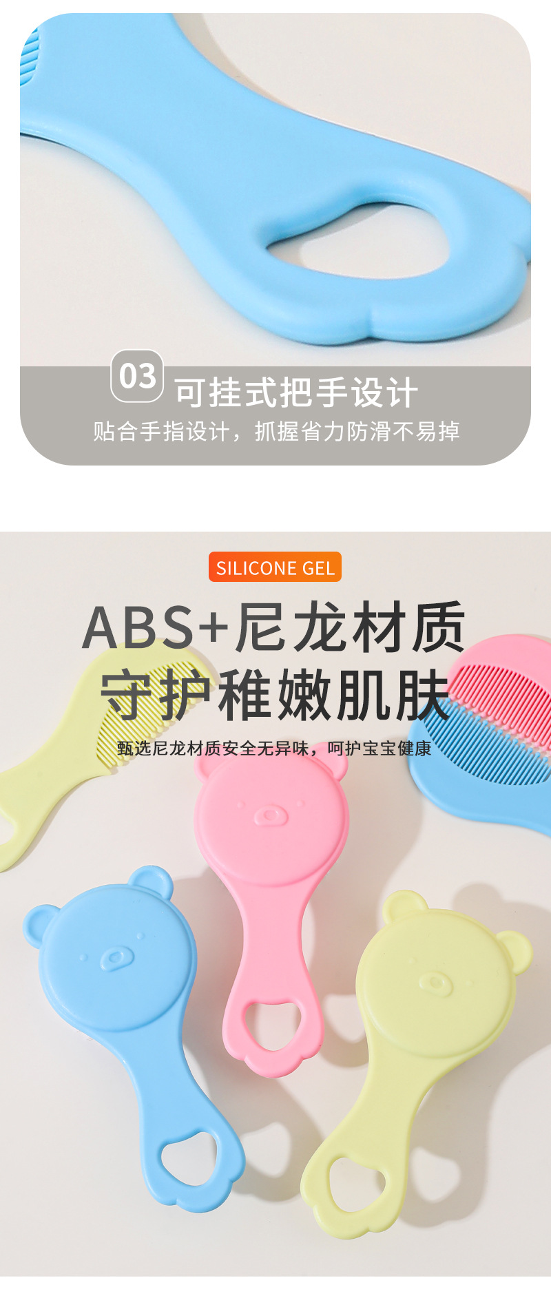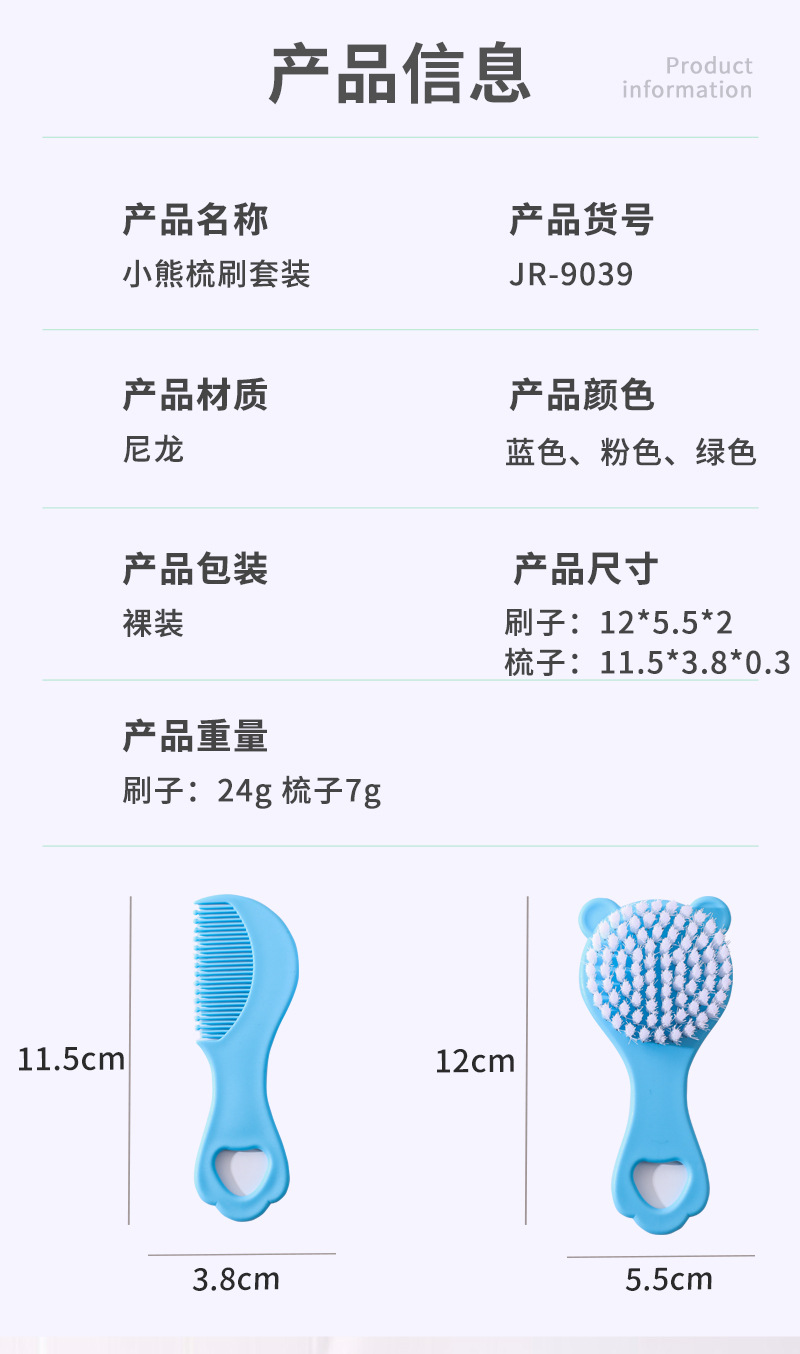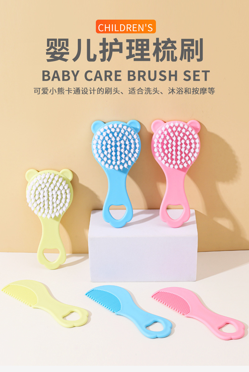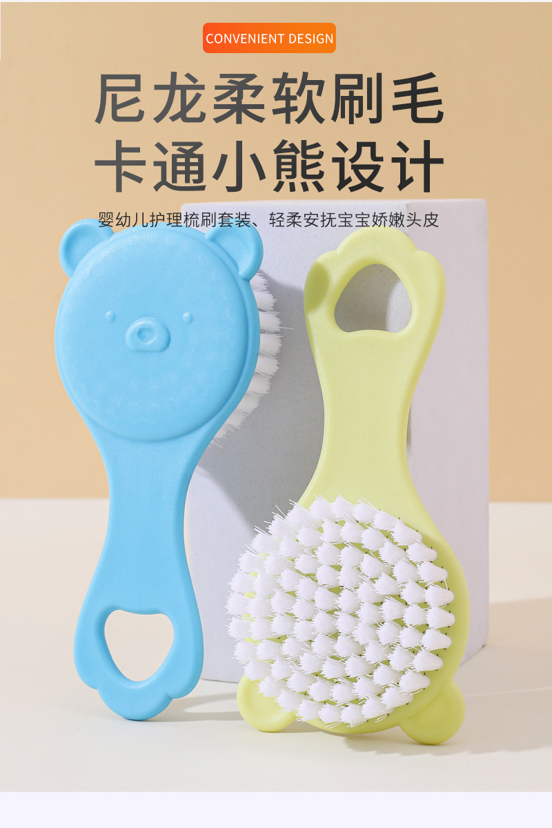 Juego de cepillos de peine de seguridad para bebés Combinación de cepillo de descalcificación para recién nacidos Peine de oso de dibujos animados para bebés al por mayor