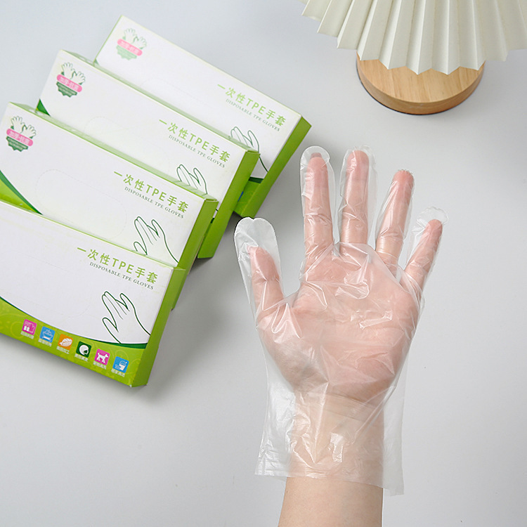 Guantes desechables de grado alimenticio Guantes de película TPE para el hogar Guantes engrosados y duraderos para la limpieza de la cocina, a prueba de aceite y a prueba de manchas