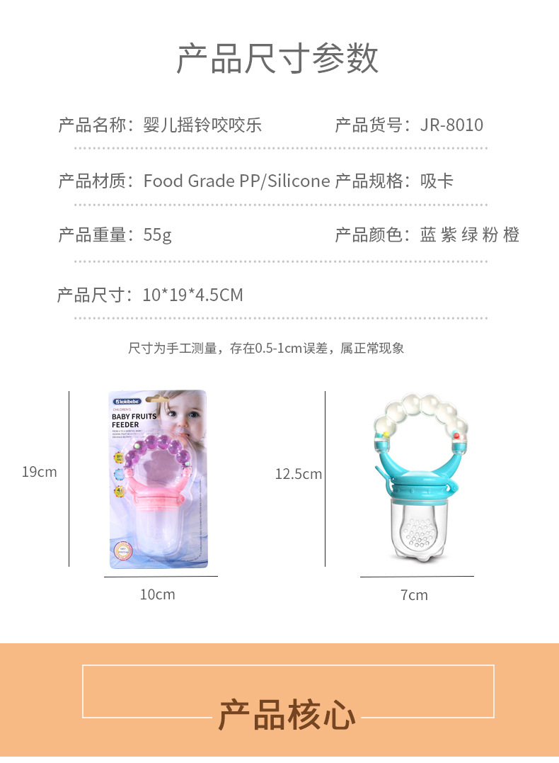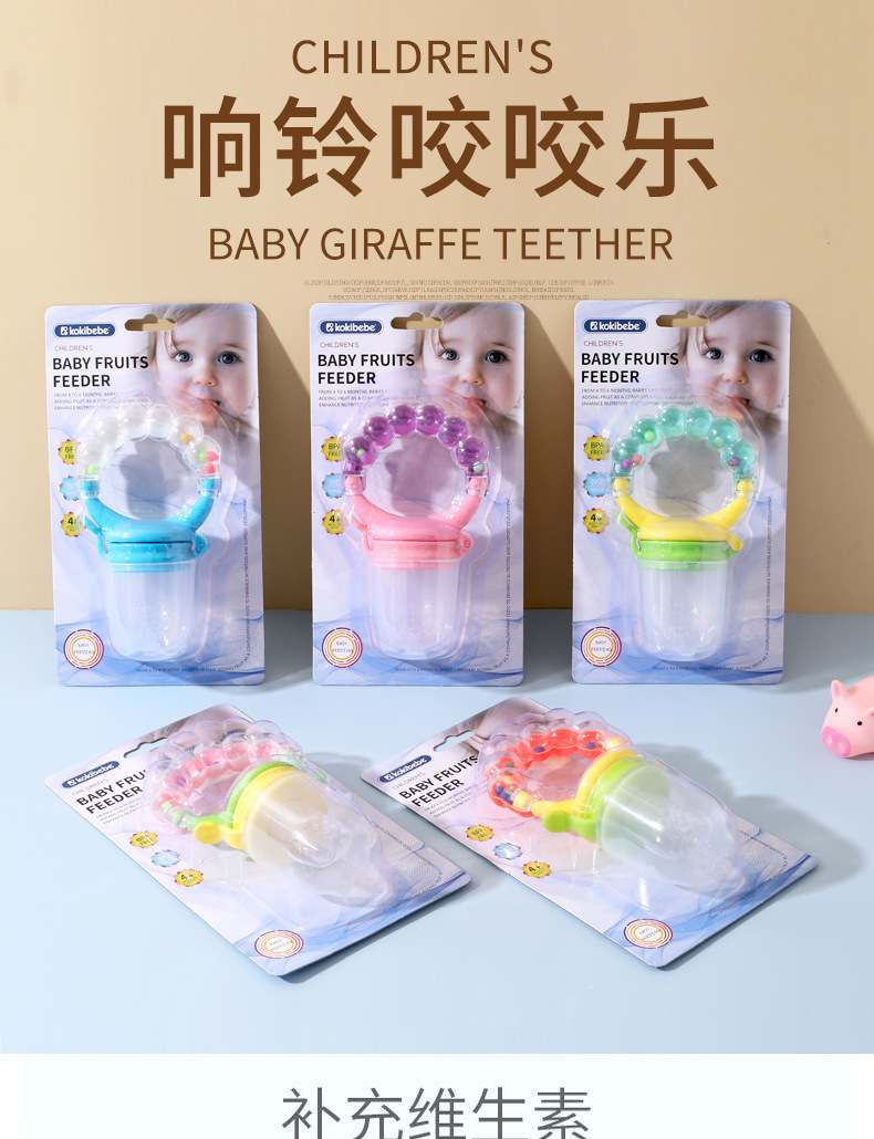 Venta caliente de comercio exterior, mordida de campana, mordida multicolor, mordida de fruta, chupete, suplemento alimenticio, sonajero, mordida de fruta