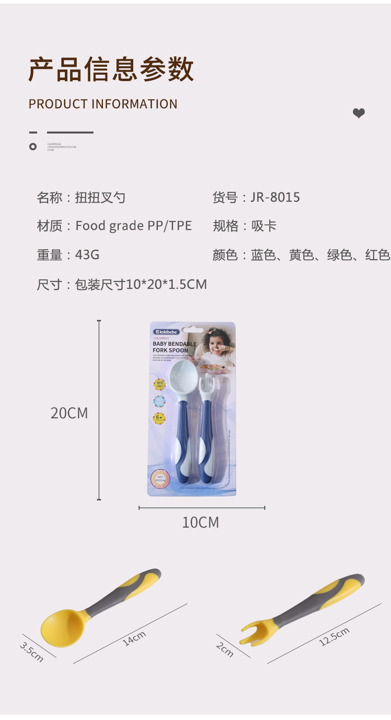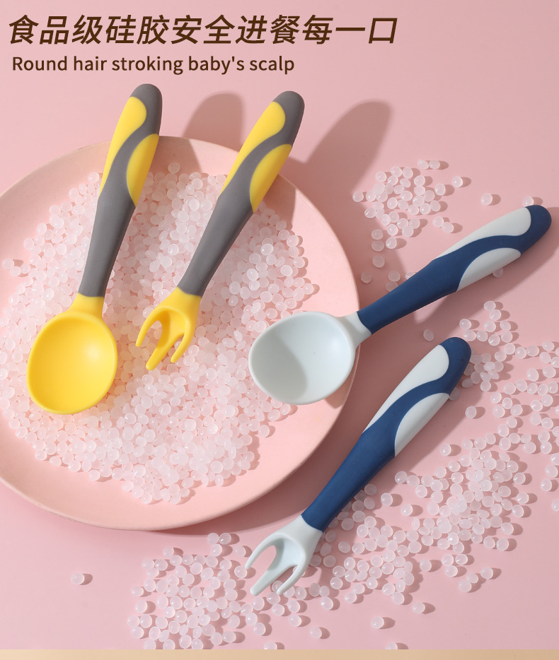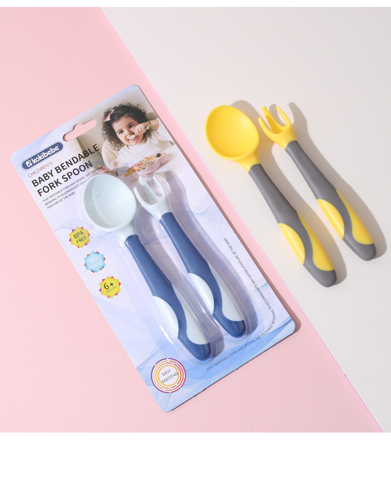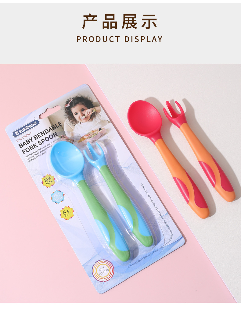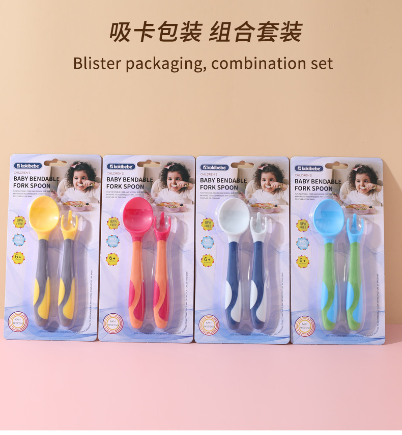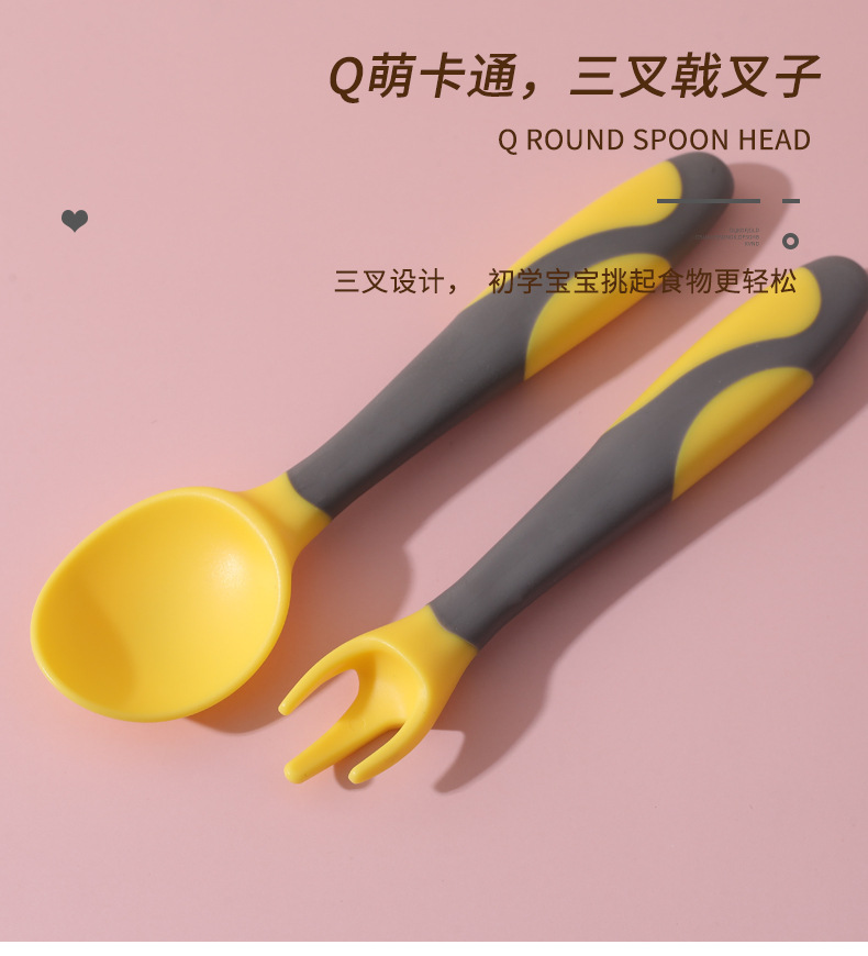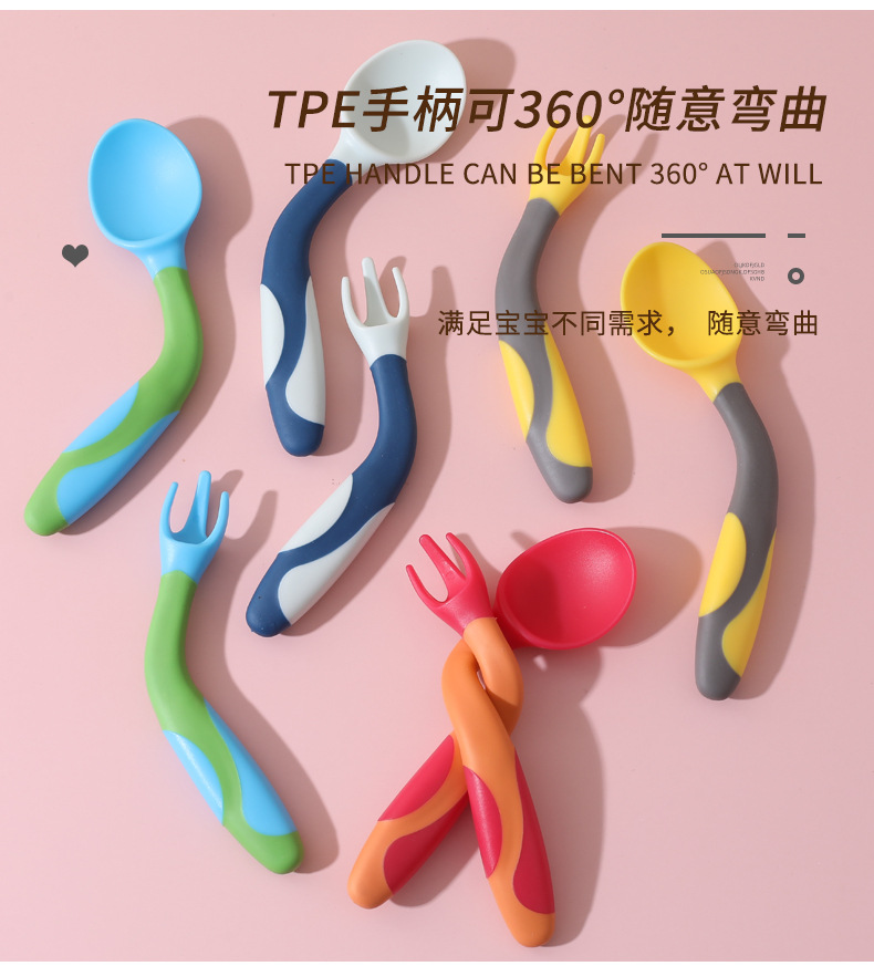 Cuchara de bebé aprendiendo a comer entrenamiento auto-comer suplemento alimenticio cuchara curvada bebé comiendo tenedor cuchara vajilla traje