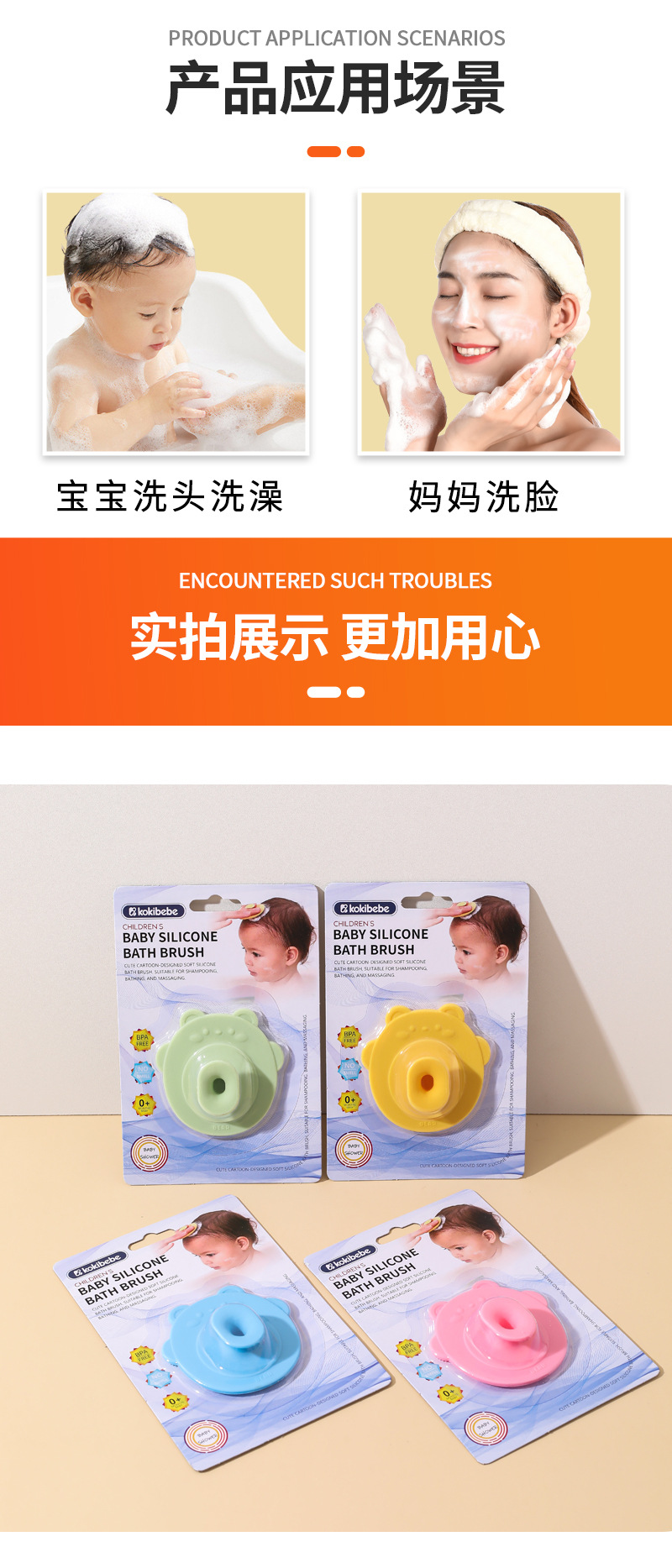 Cepillo de champú de silicona para bebé de oso cepillo suave cepillo de baño para bebé cepillo de masaje de champú para bebé lindo de dibujos animados