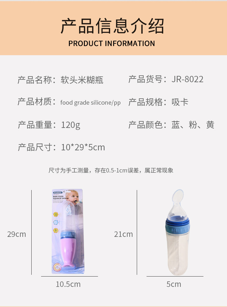 Botella de pasta de arroz de silicona para bebés Botella de suplemento alimenticio para bebés Botella de alimentación de cabeza blanda para bebés Cuchara de cereal de arroz Botella de leche