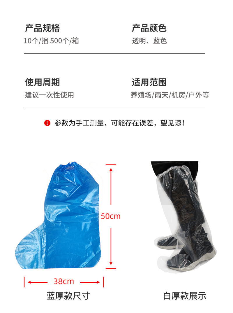 Cubierta de zapatos desechable Cubierta de zapatos impermeable Cubierta de botas de granja de tubo largo engrosada en días lluviosos Cubierta de botas de plástico a la deriva al por mayor