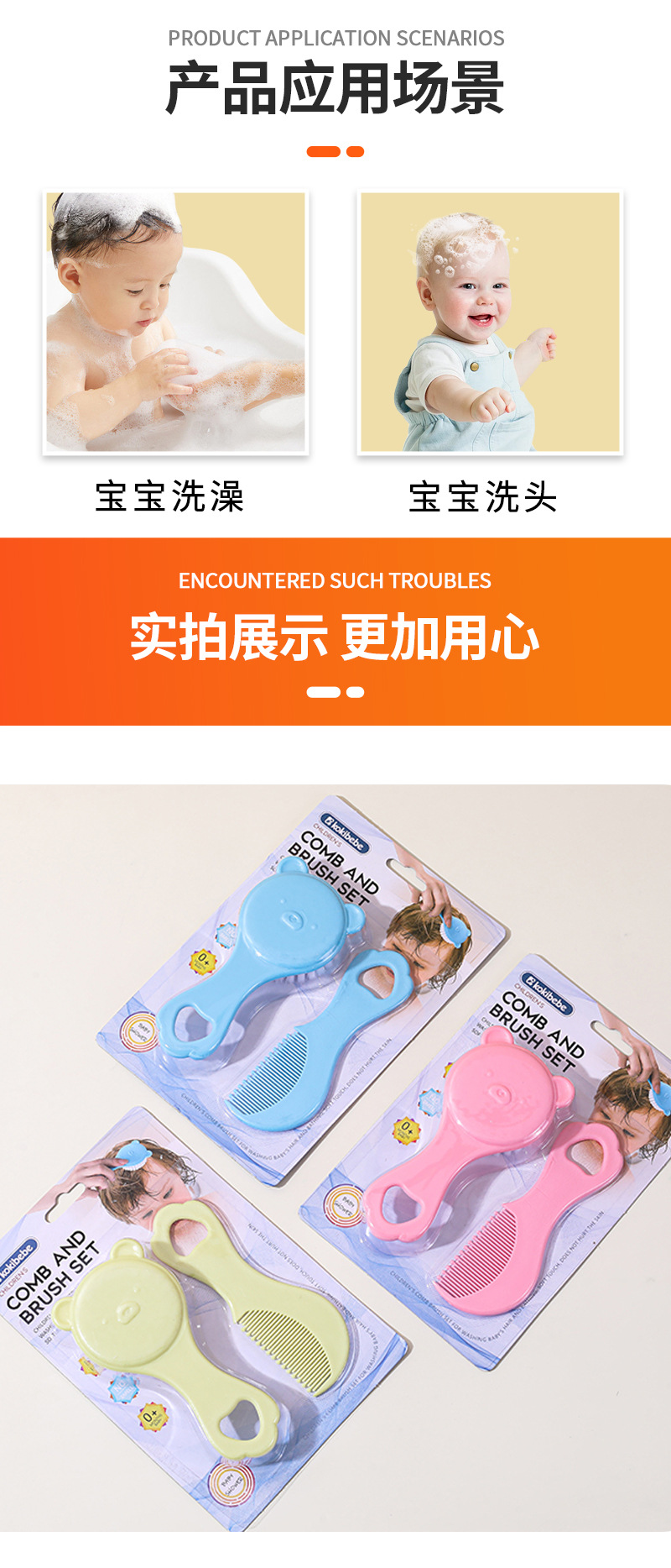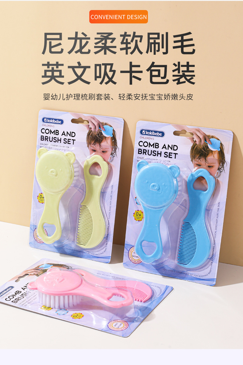Juego de cuidado del bebé, cepillo de peine para bebé recién nacido, cepillo de limpieza de cuidado de dibujos animados de oso, productos maternos e infantiles al por mayor
