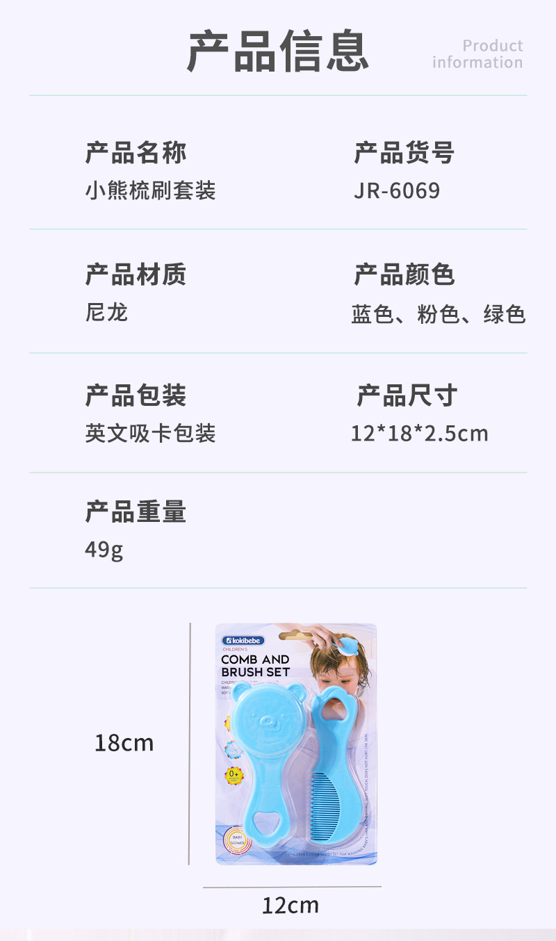 | Colores | Cepillo de peine rosa (6069),Cepillo de peine azul (6069),Cepillo de peine verde (6069) |