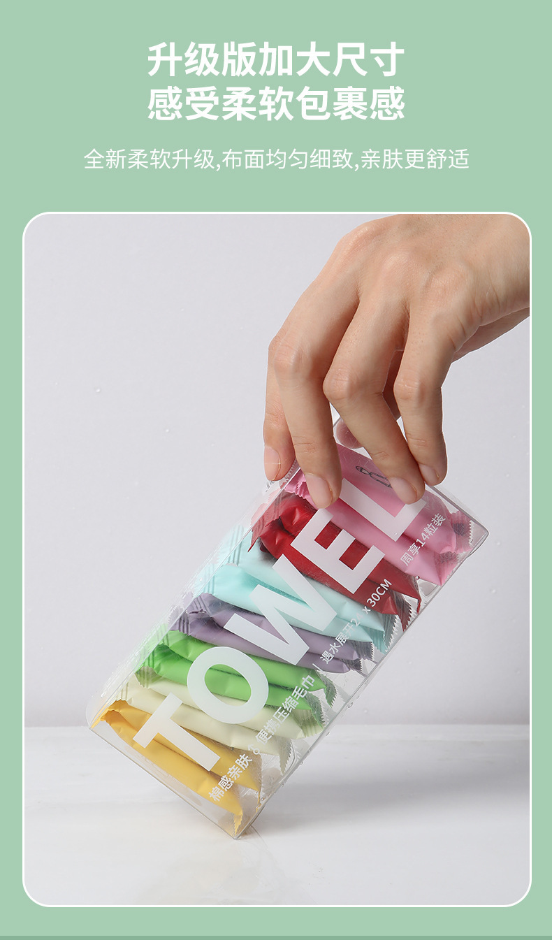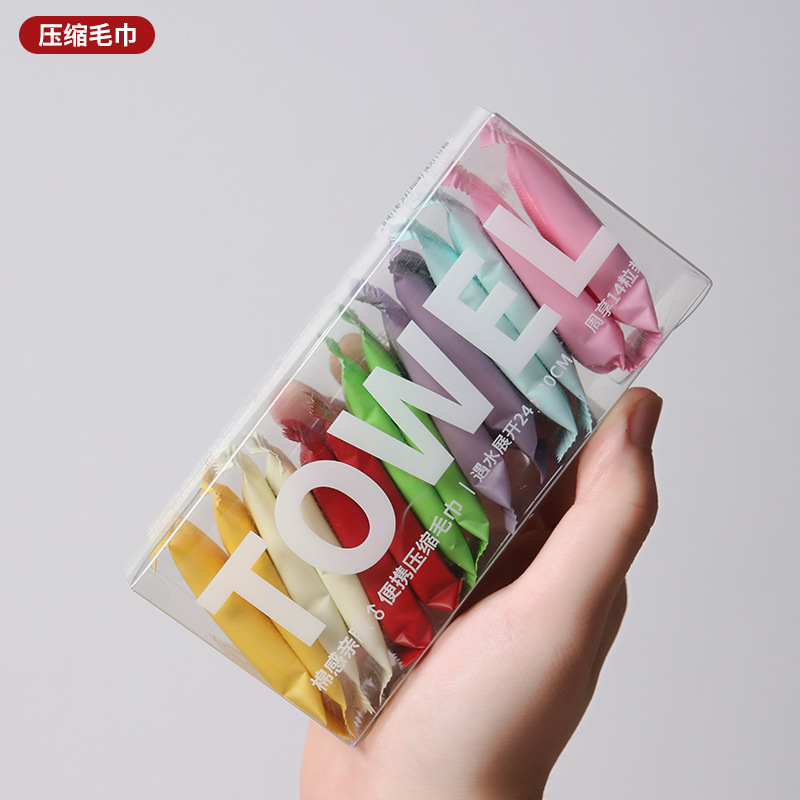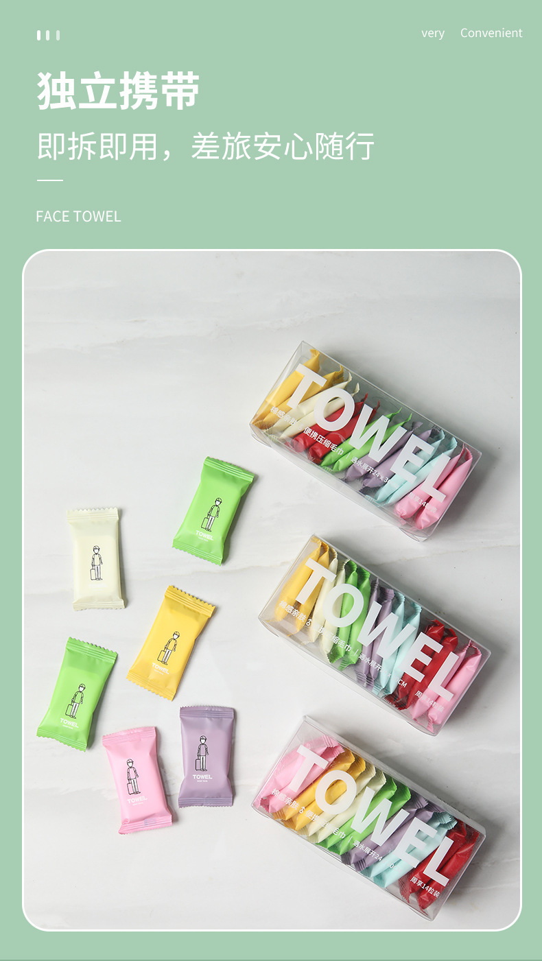 Toalla de compresión portátil de alta gama Toalla de lavado de cara nueva Limpieza de viaje Toalla de limpieza de caja independiente Toalla cuadrada pequeña