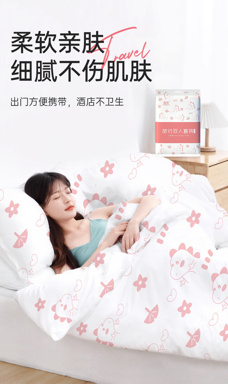 Funda de edredón de sábana desechable de cuatro piezas Funda de almohada Funda de edredón de hotel engrosada de viaje Funda de edredón de sábana desechable