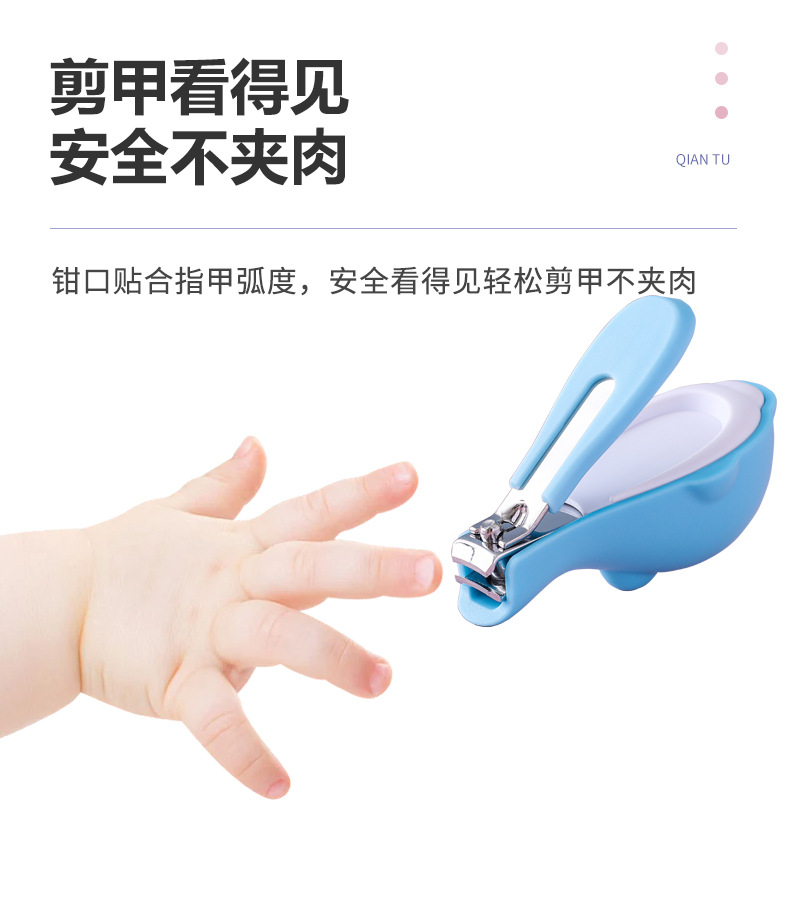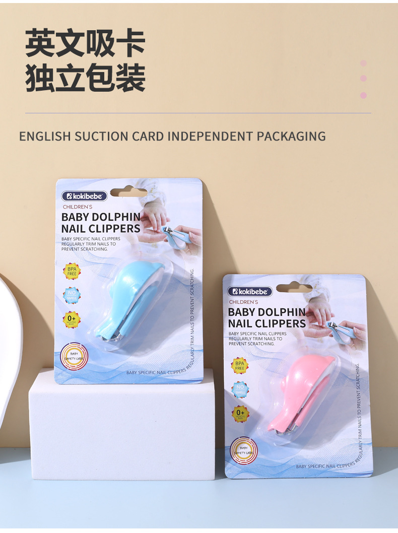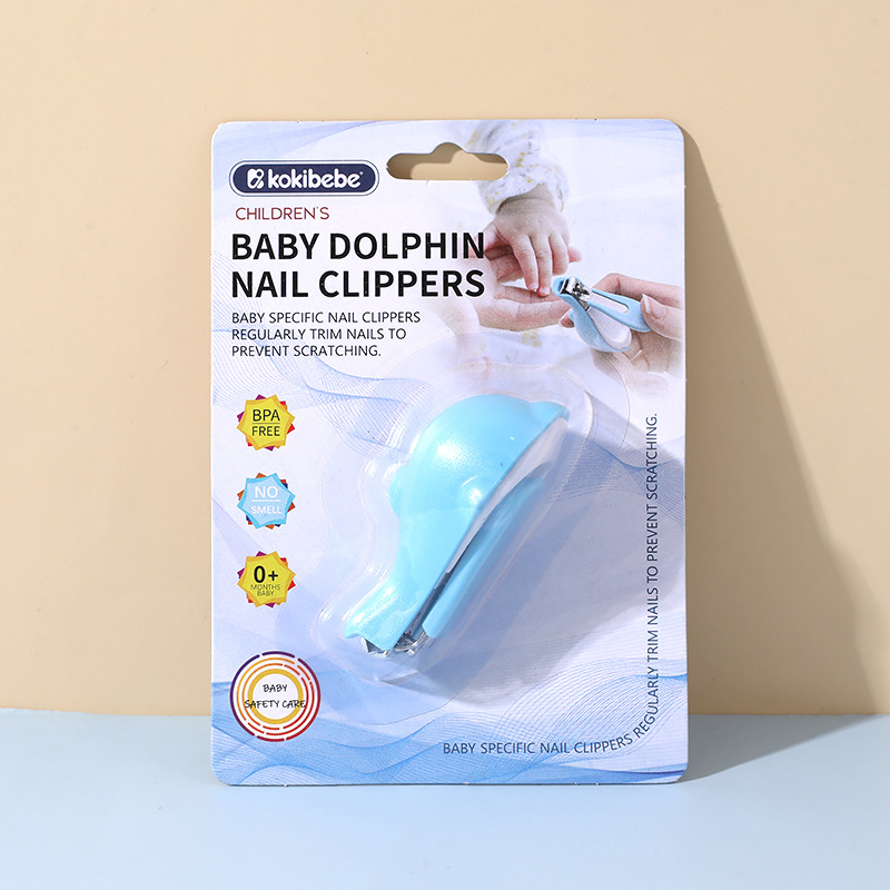 Tarjeta de succión inglesa cortaúñas para bebés dibujos animados lindo cortaúñas delfín recién nacido cortaúñas anti-pellizca para bebés