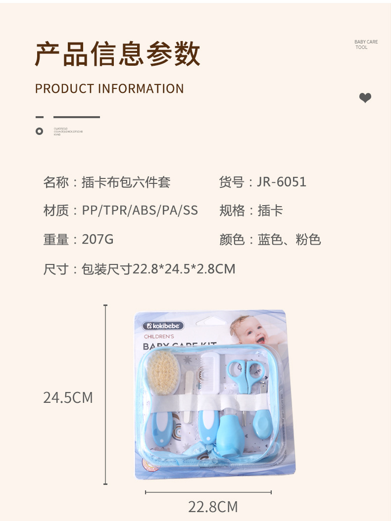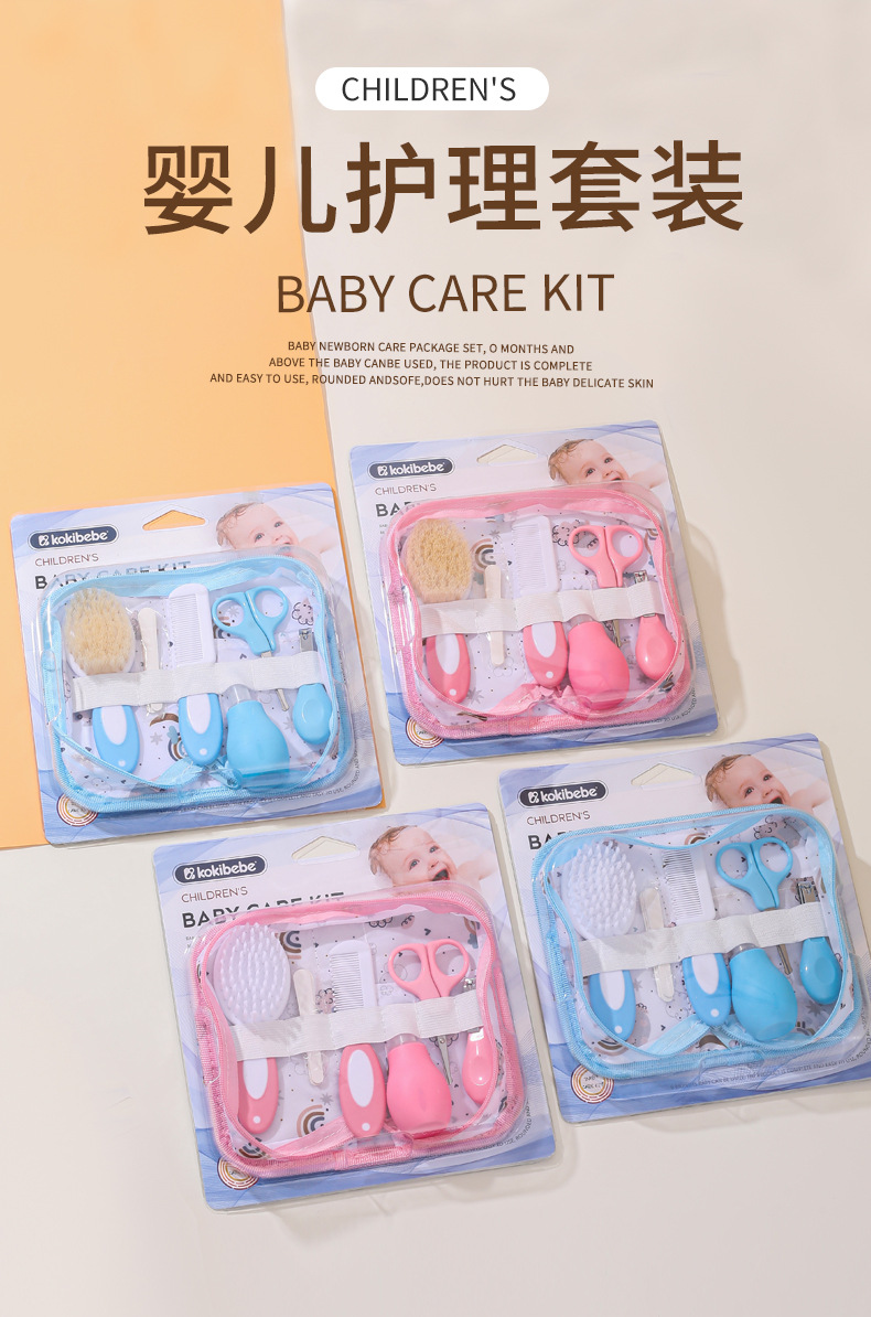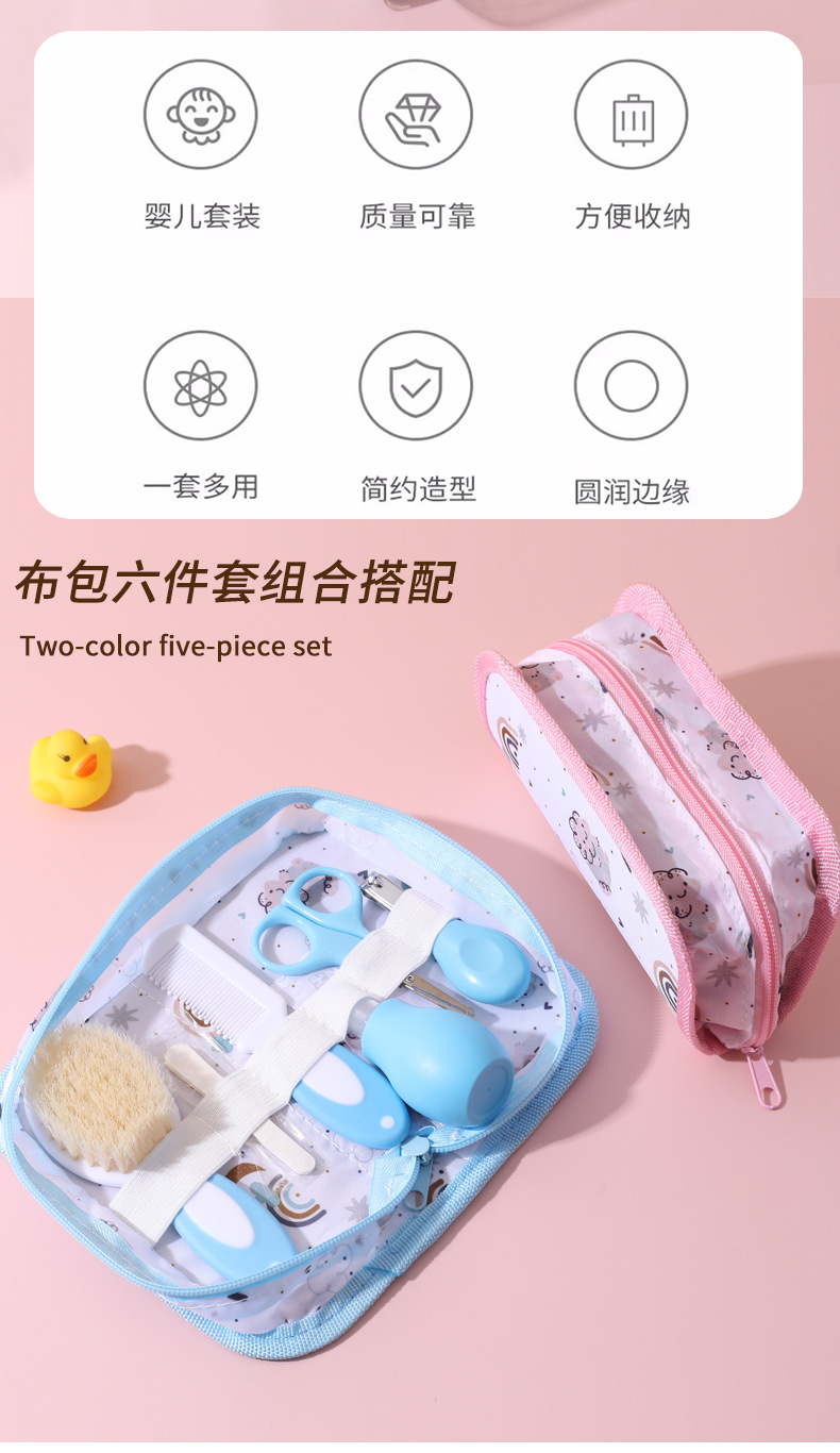 Juego de cuidado del bebé, cortaúñas, aspirador nasal, bolsa de tela con tarjeta, juego de seis piezas, combinación de cepillo de descalcificación para recién nacidos