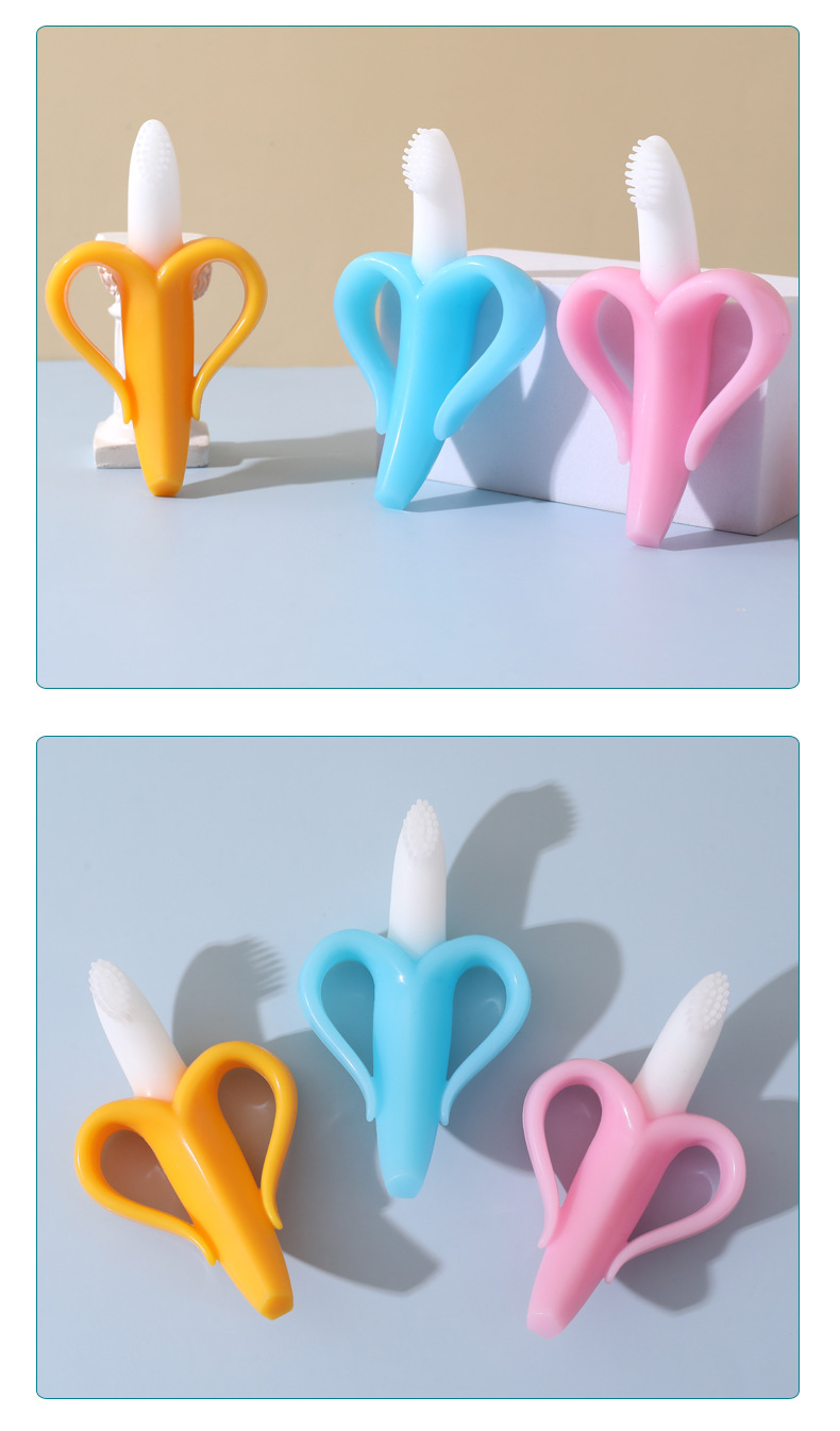 Bebé suministros bebé plátano teether stick teether alimentos silicona fruta teether bebé entrenamiento cepillo de dientes