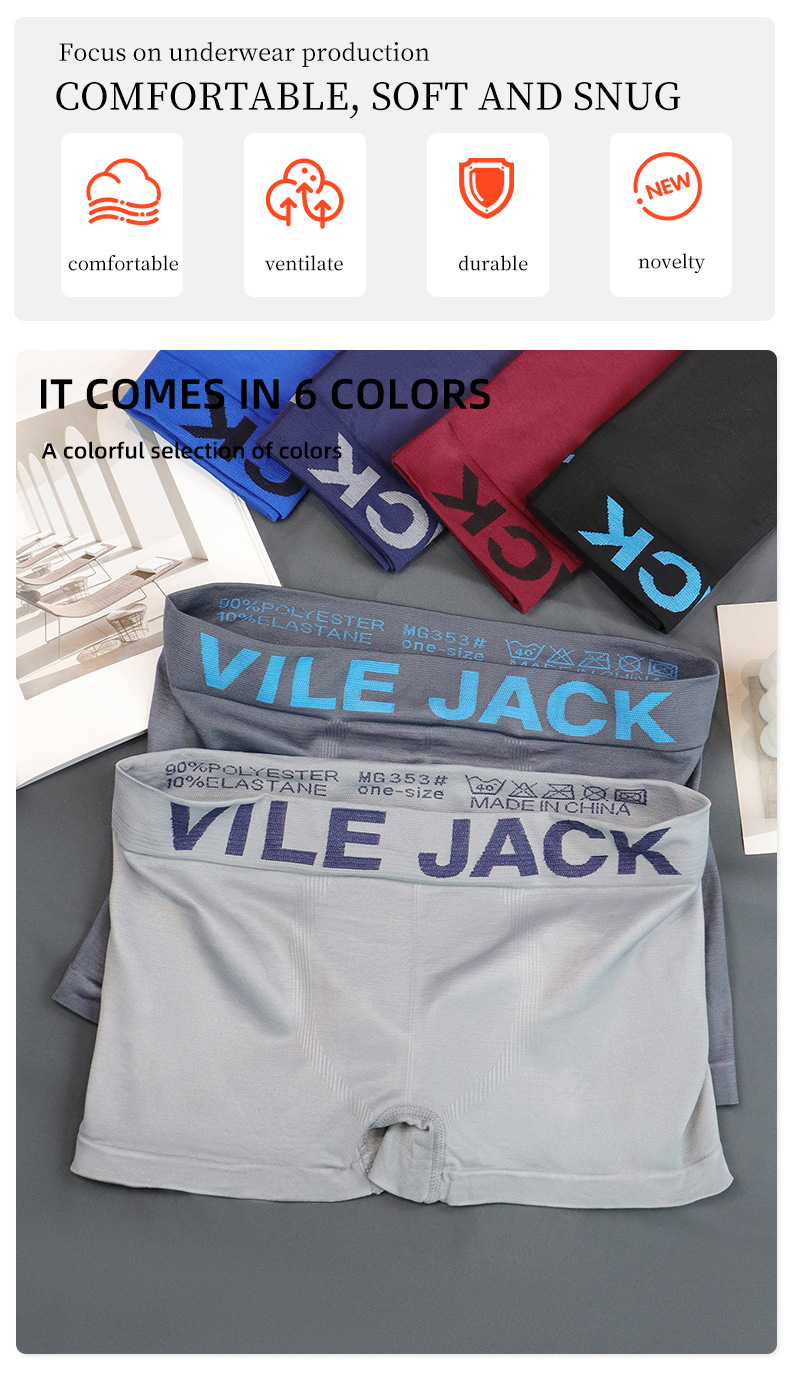 Calzoncillos bóxer para hombre VILEJACk, sin costuras, elásticos, transpirables, de cintura media, tejido de cuatro esquinas, suministro mayorista transfronterizo.