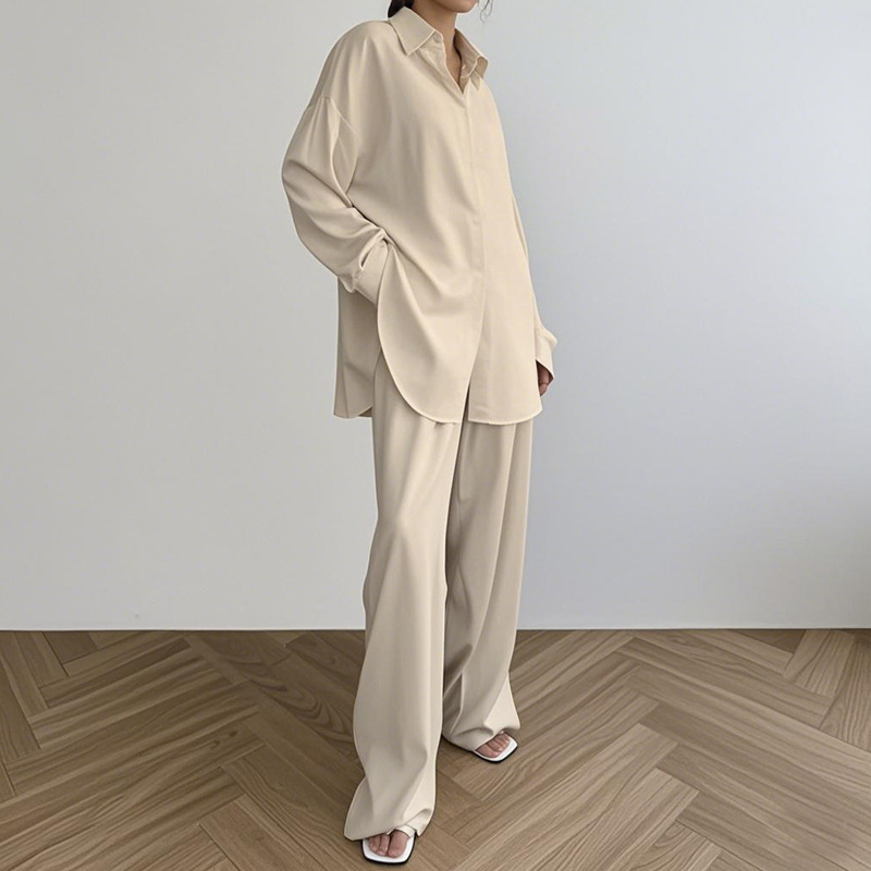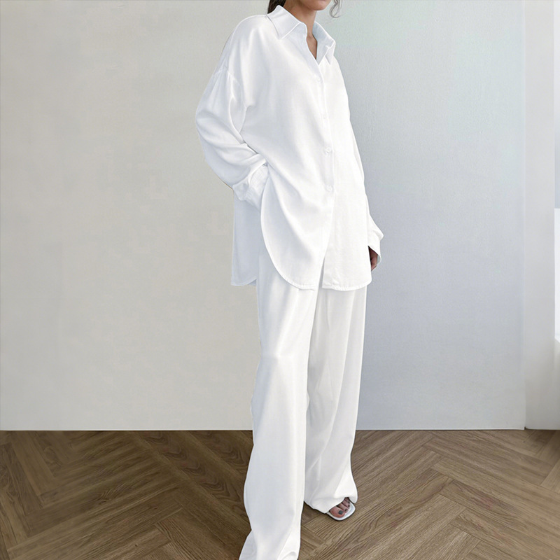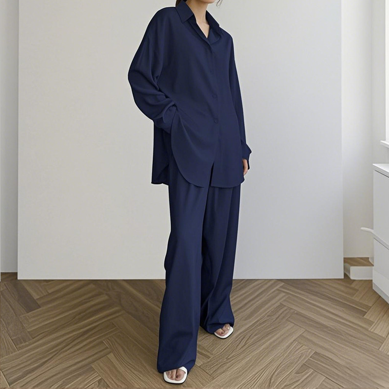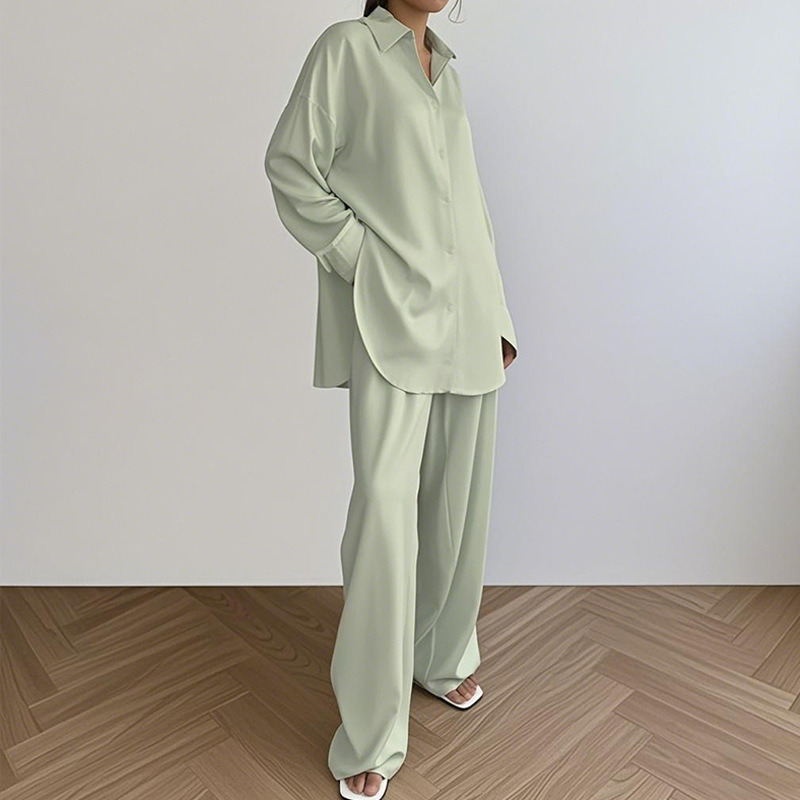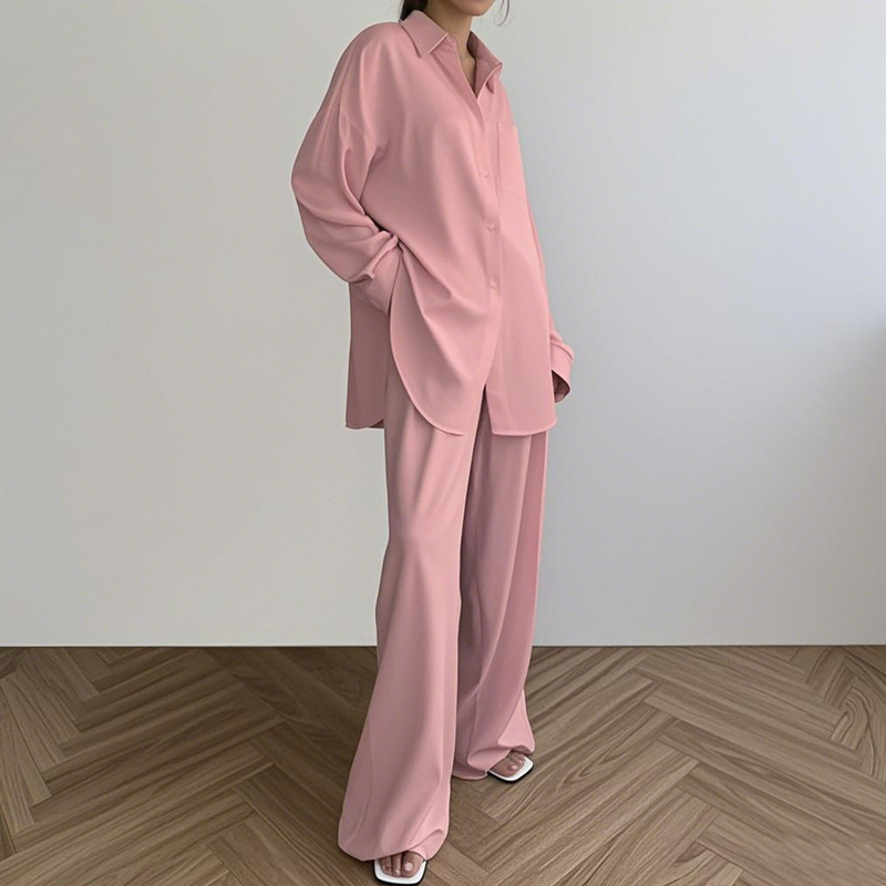 Nuevo cárdigan suelto transfronterizo, ropa a domicilio, cómodos pantalones de solapa de manga larga, traje de dos piezas, ropa a domicilio al por mayor