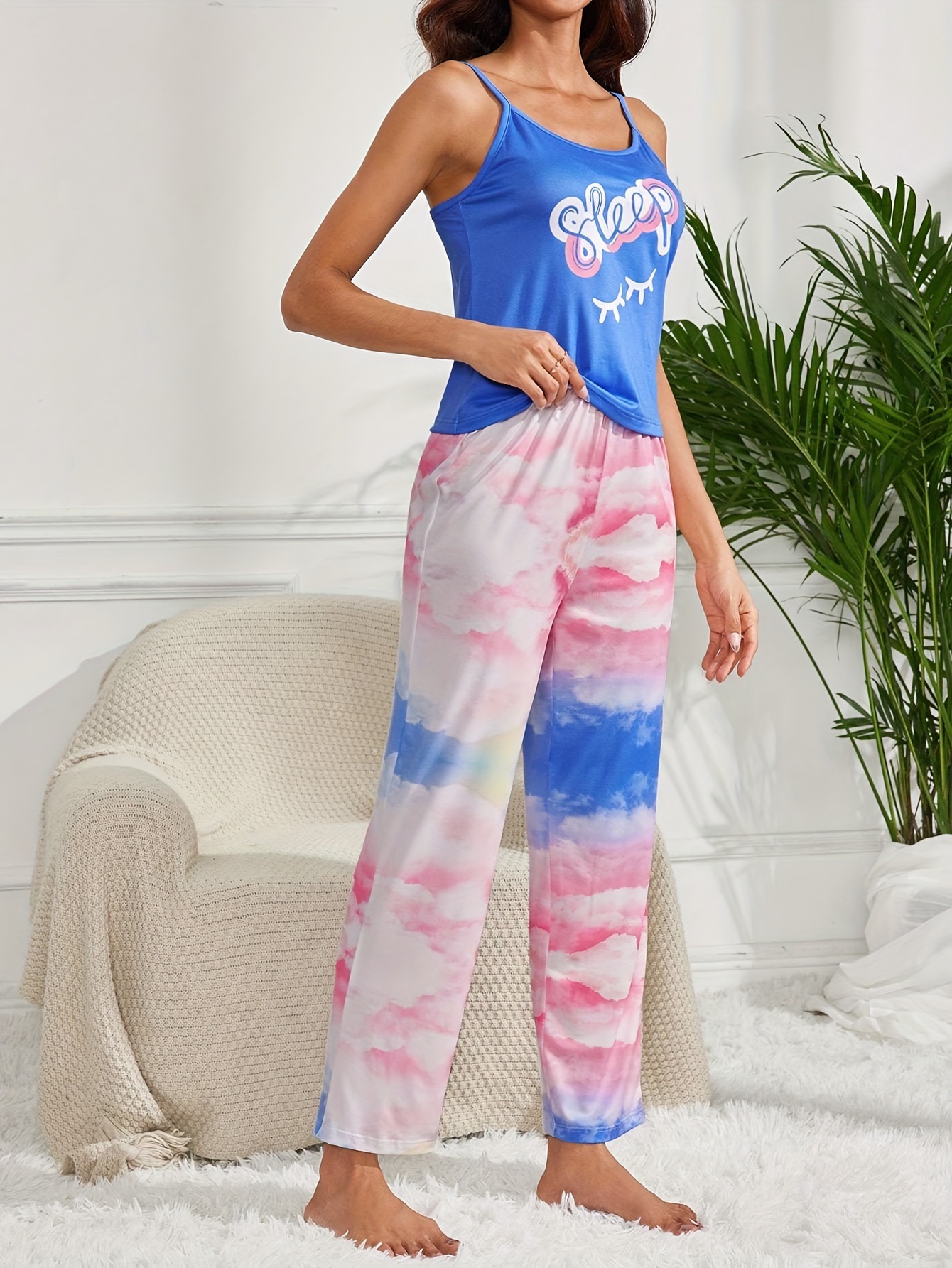 2025 nuevo estilo transfronterizo Amazon traje europeo y americano pijamas casual y cómodo servicio a domicilio pantalones a juego con estampado de letras