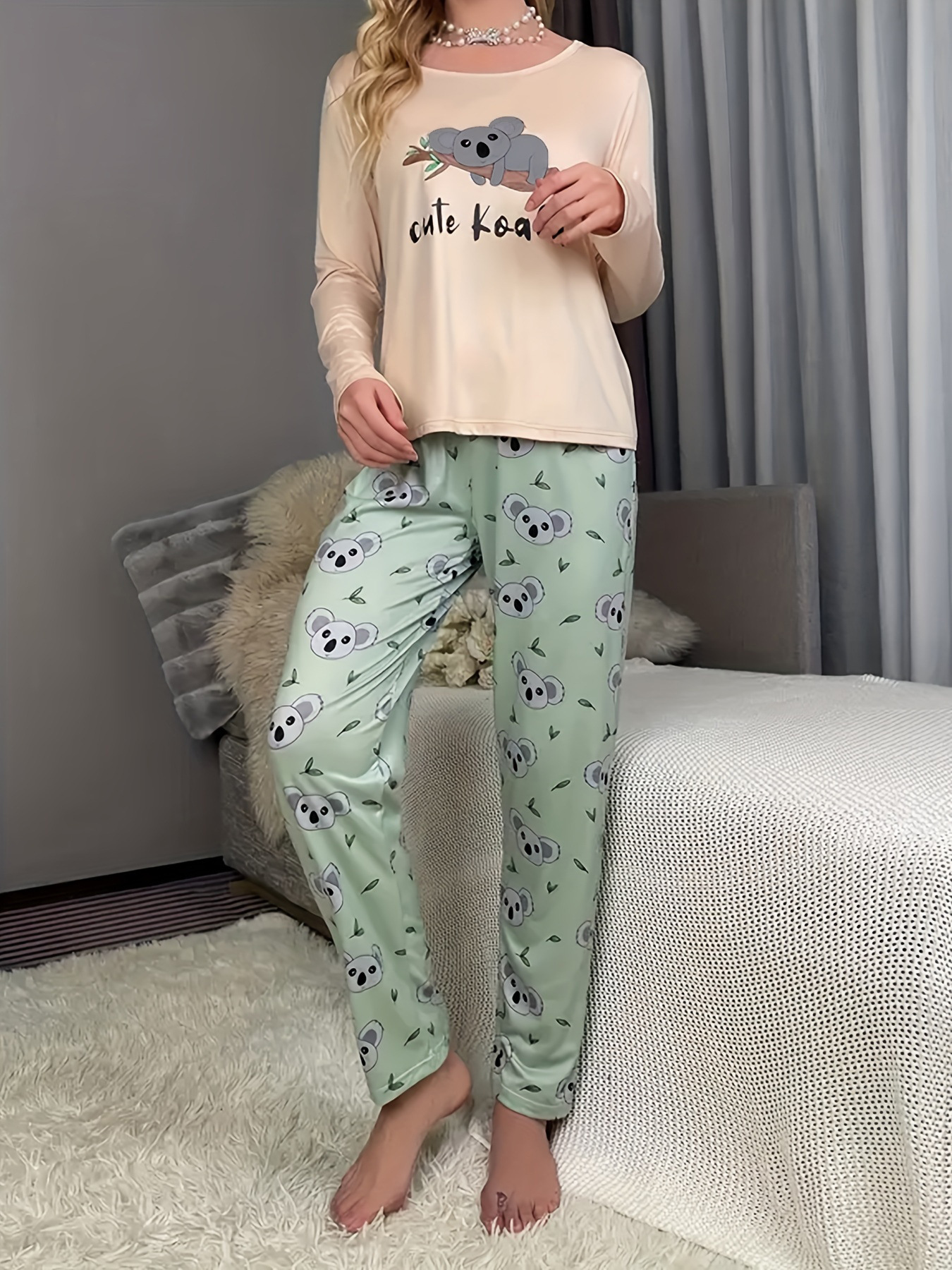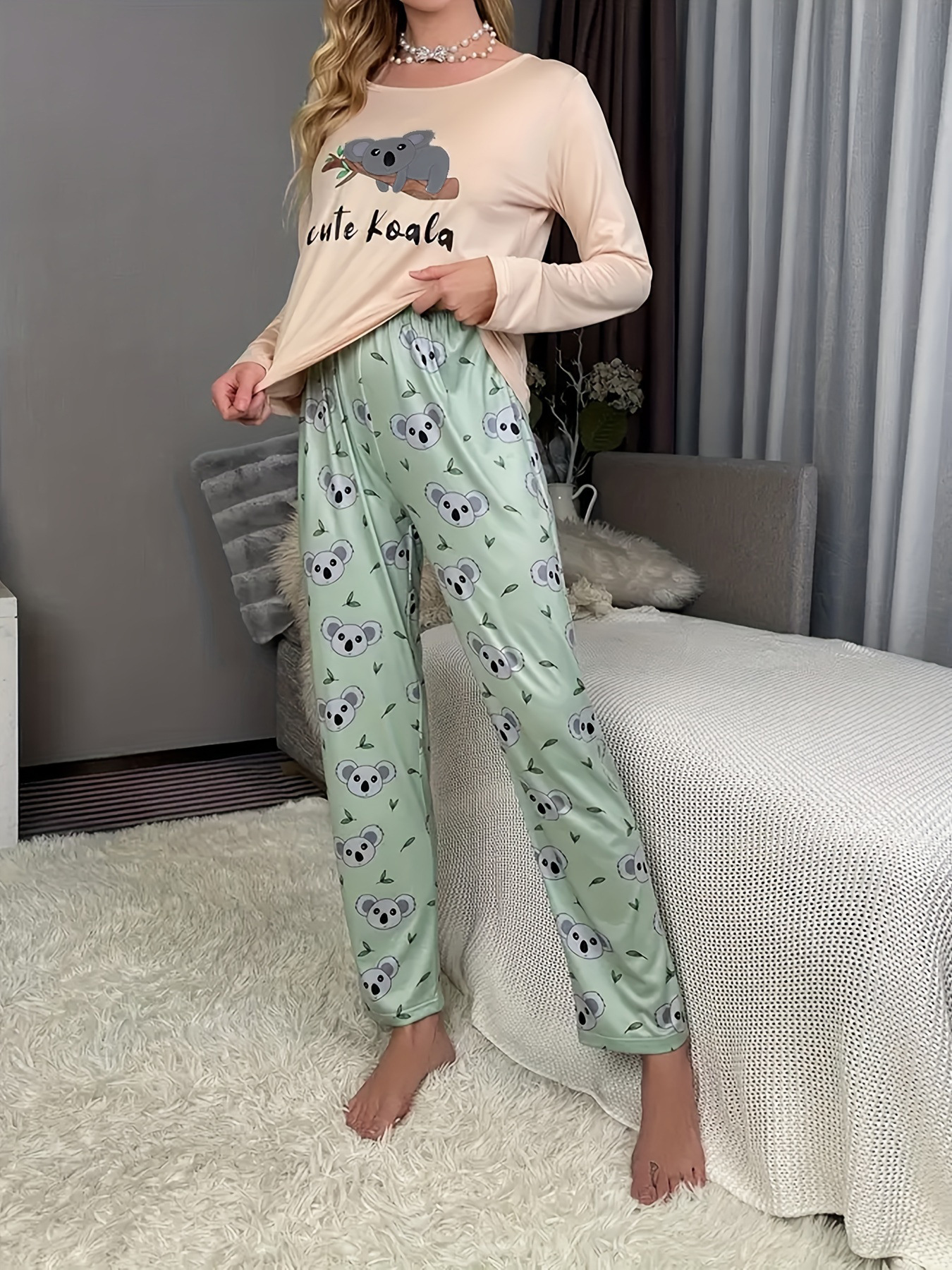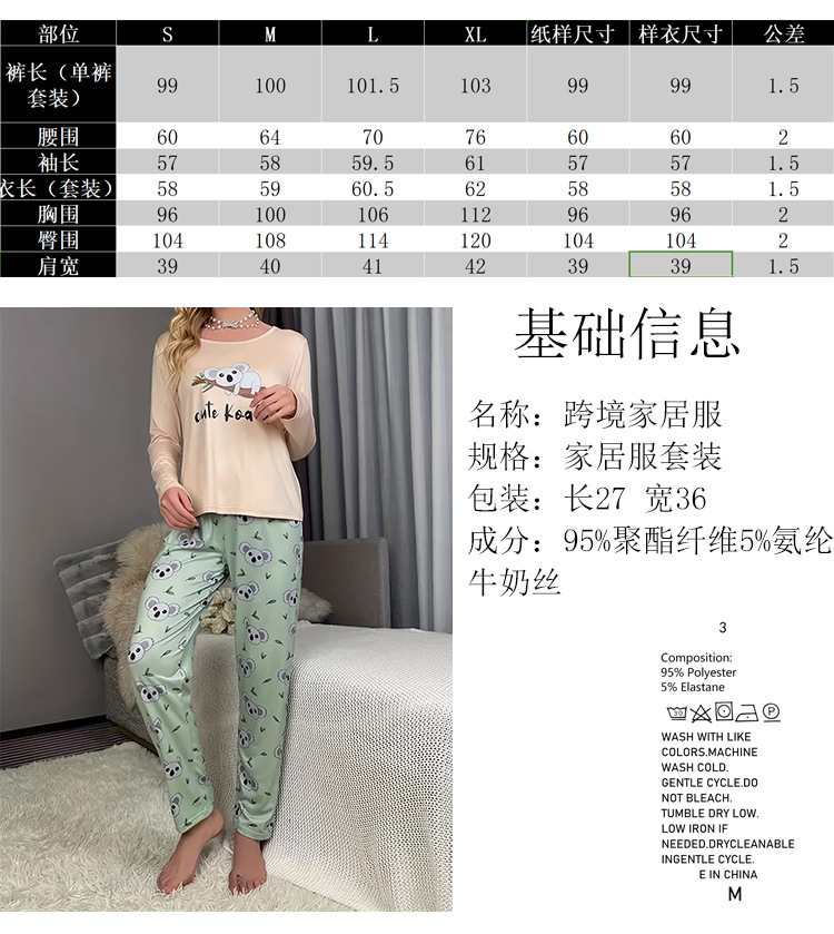 Pijamas de servicio a domicilio de mujer con estampado de Amazon transfronterizo nuevo estilo de servicio a domicilio con estampado de manga larga 2025 pantalones de mujer