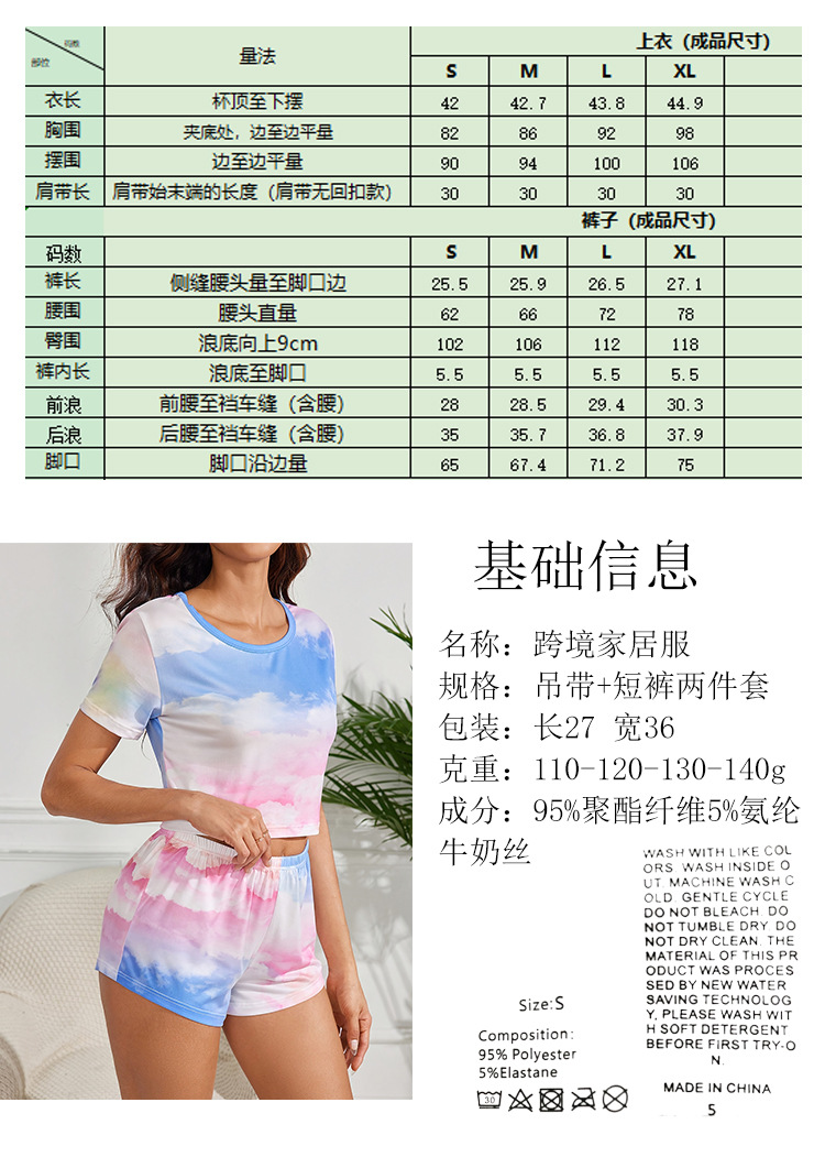 Moda europea y americana casual verano nuevo estilo estampado degradado deportes Amazon mujer cuello redondo cuello redondo pantalones cortos de manga corta