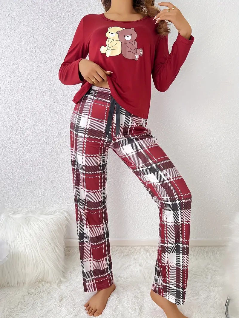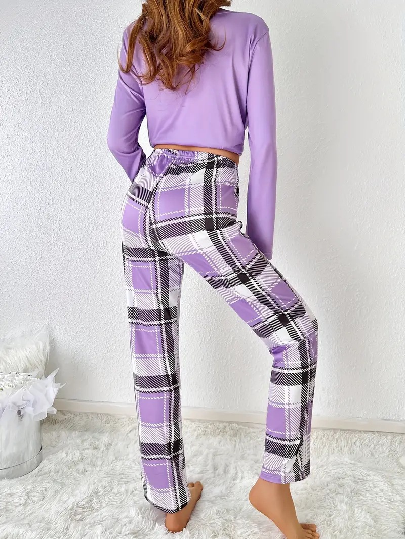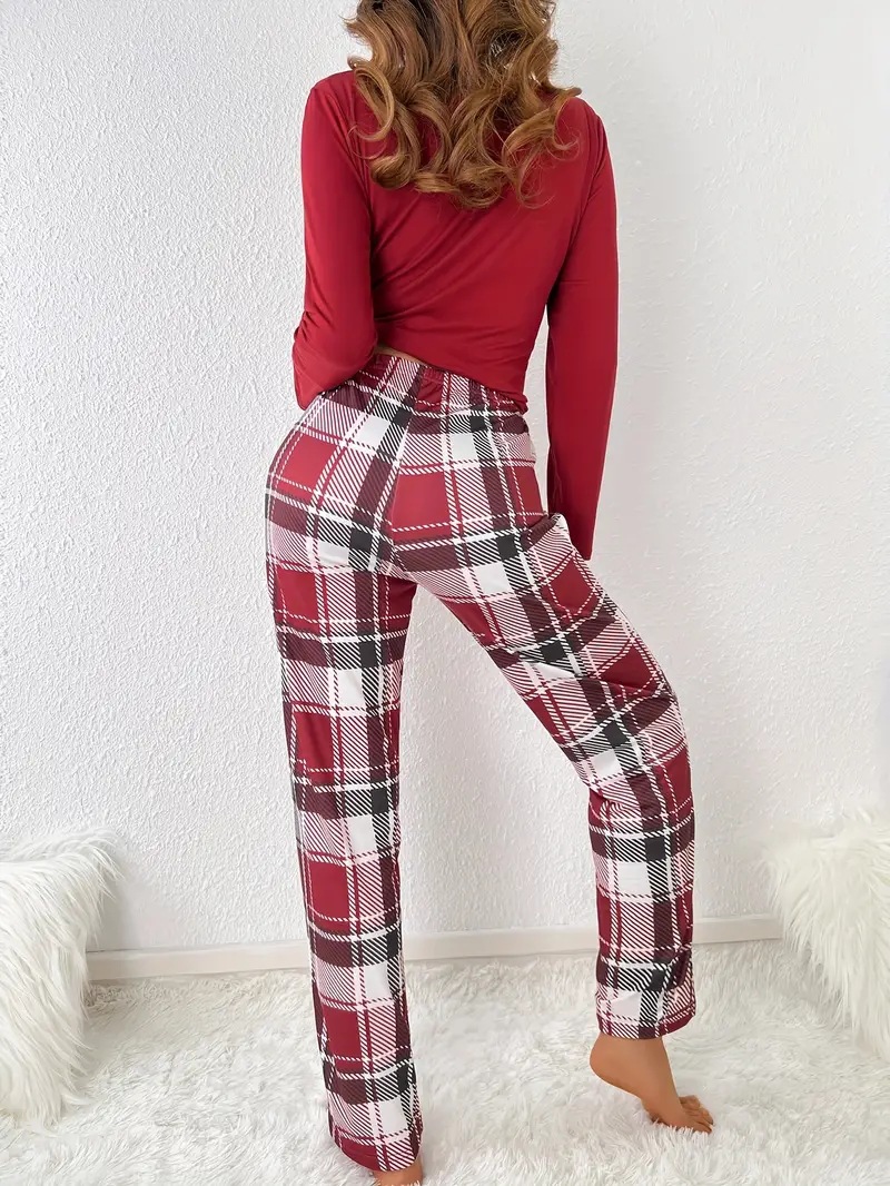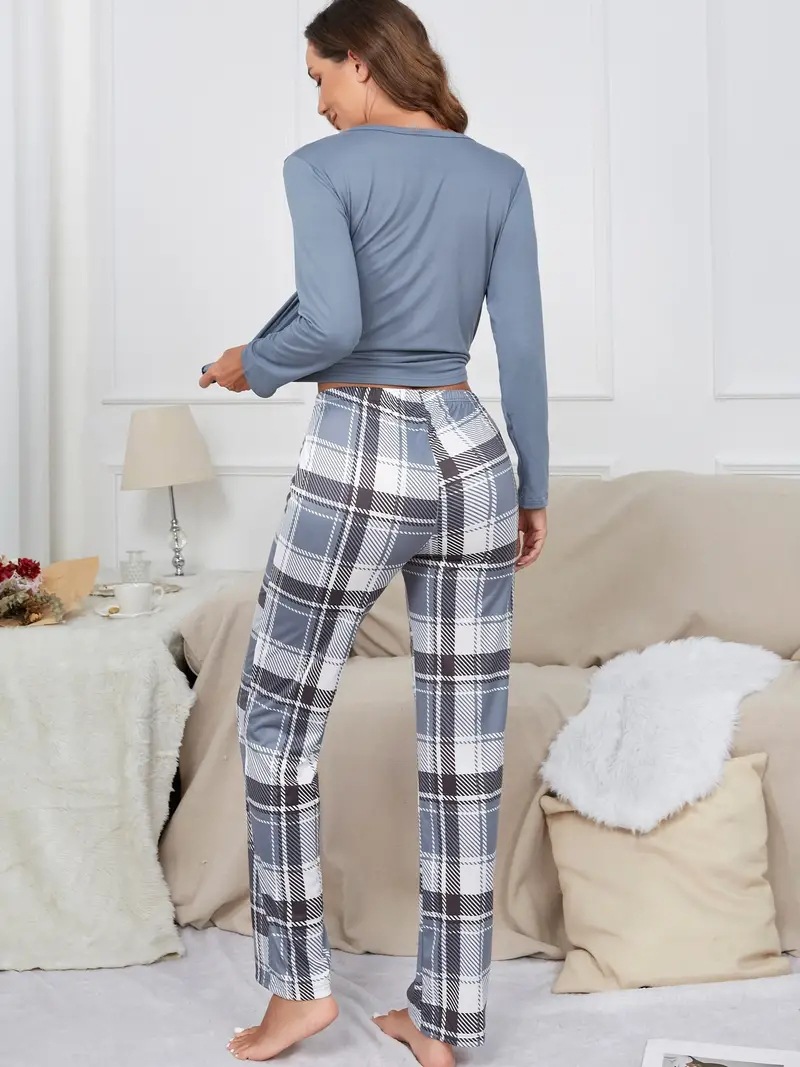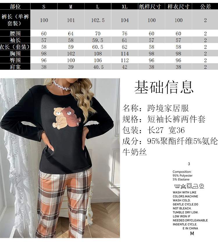 Transfronterizo Amazon AliExpress Ropa a domicilio europea y americana Conjunto de pijamas de otoño e invierno Pantalones a cuadros estampados de manga larga de dos piezas