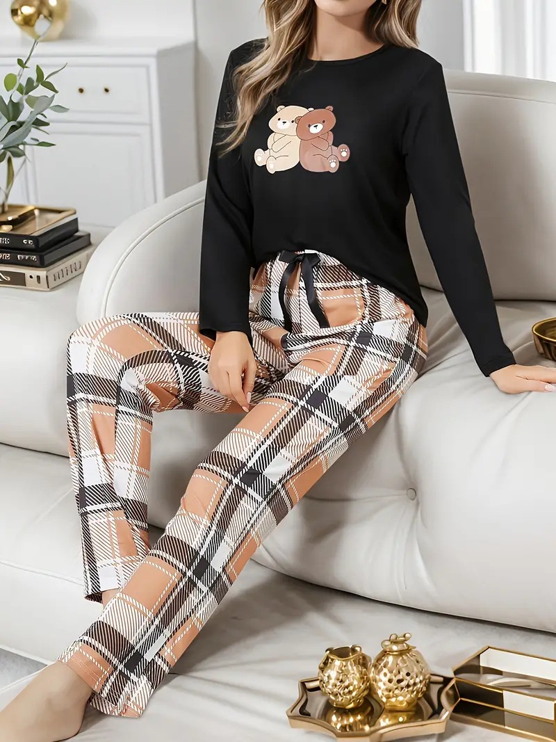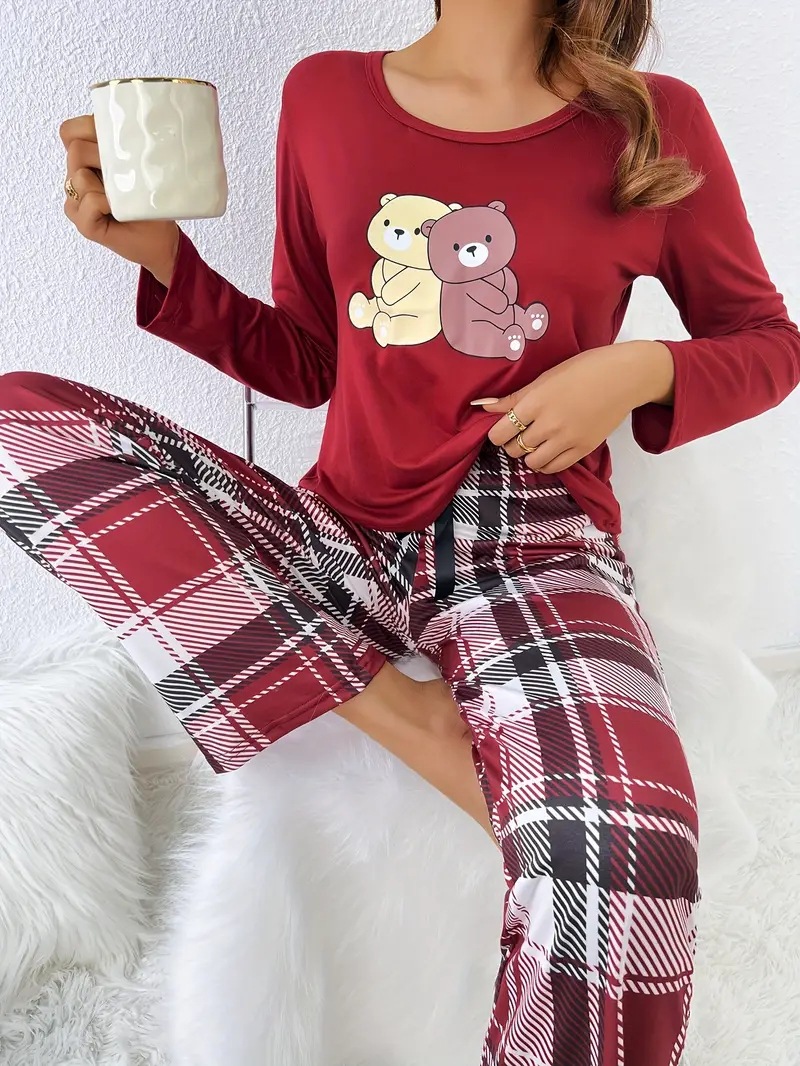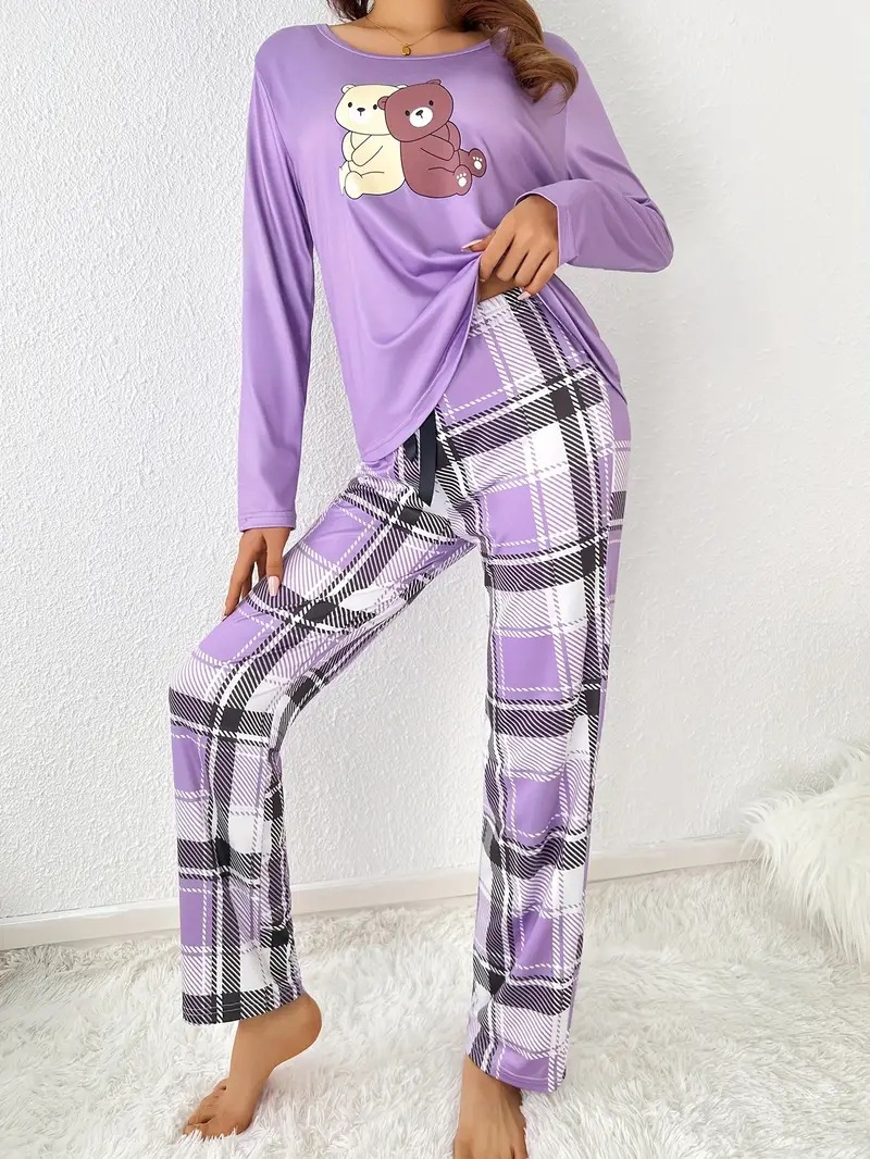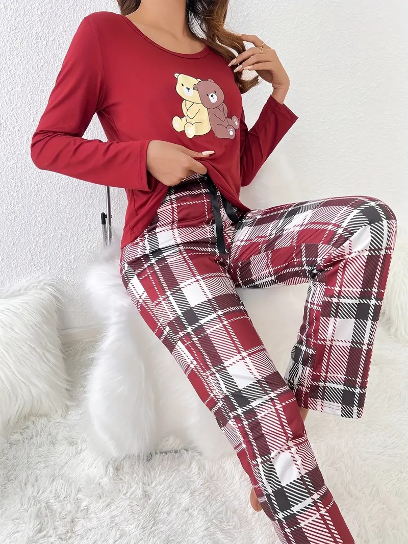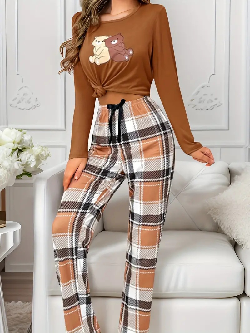 Transfronterizo Amazon AliExpress Ropa a domicilio europea y americana Conjunto de pijamas de otoño e invierno Pantalones a cuadros estampados de manga larga de dos piezas
