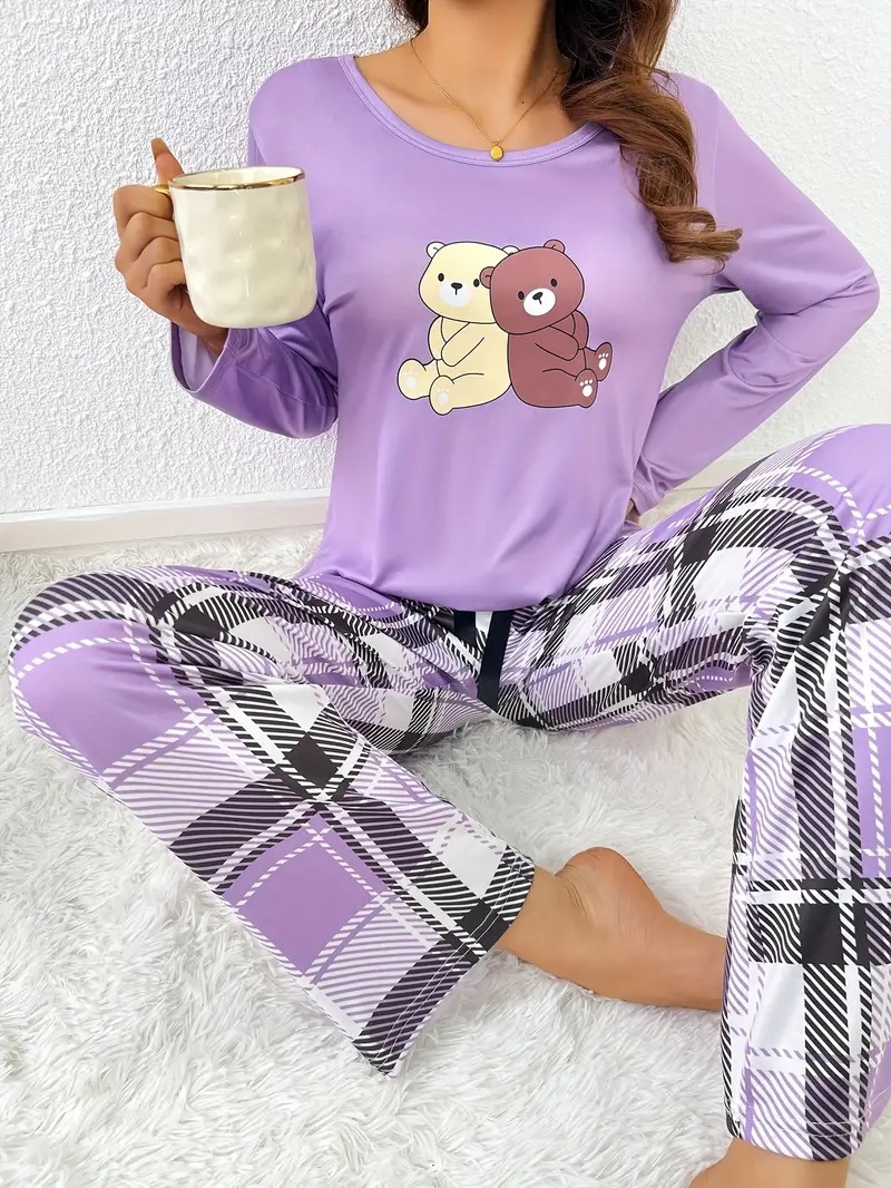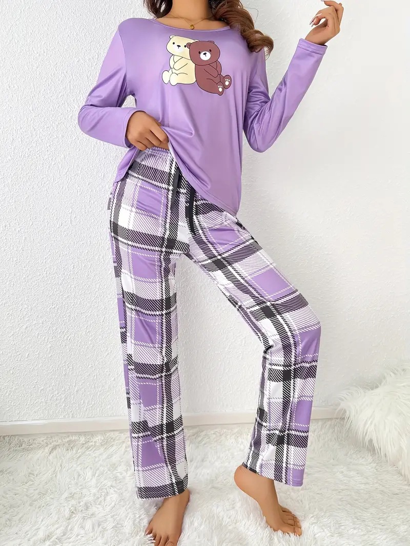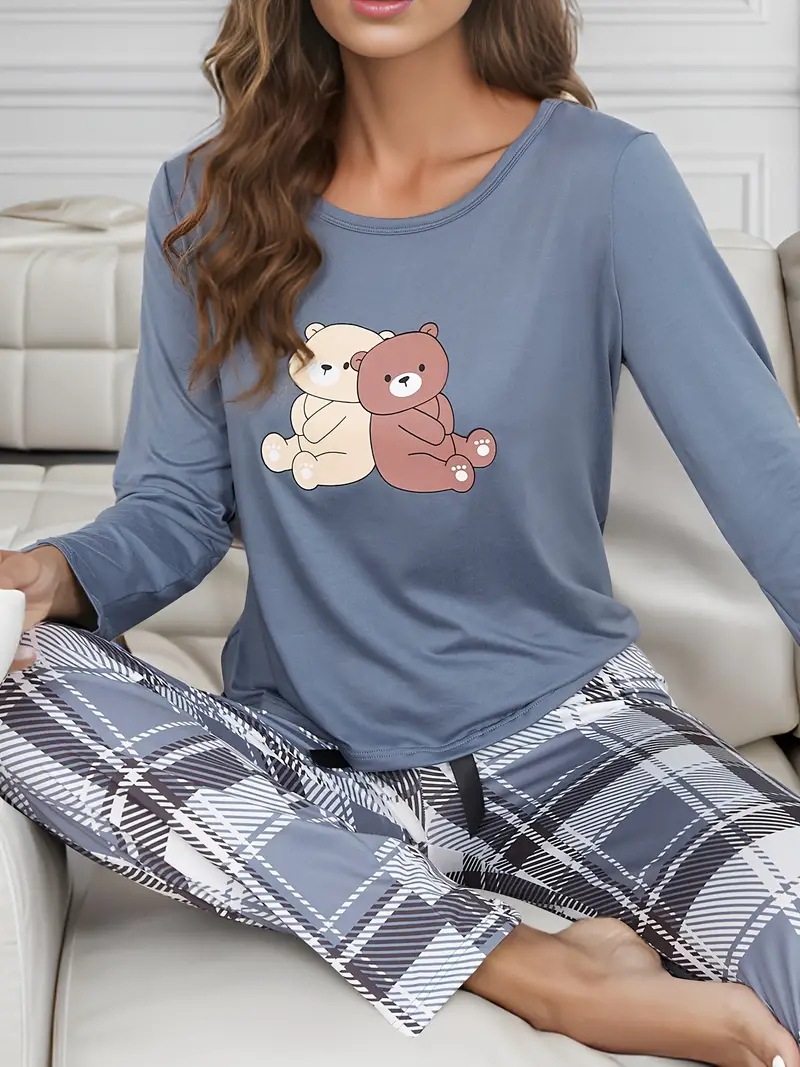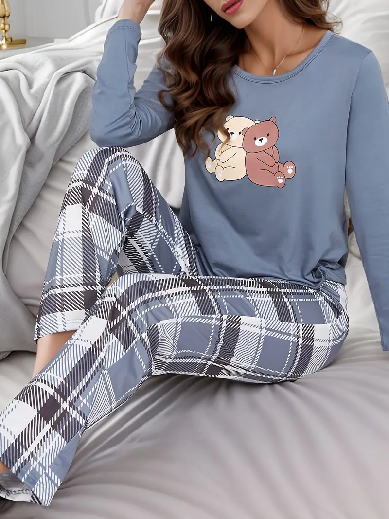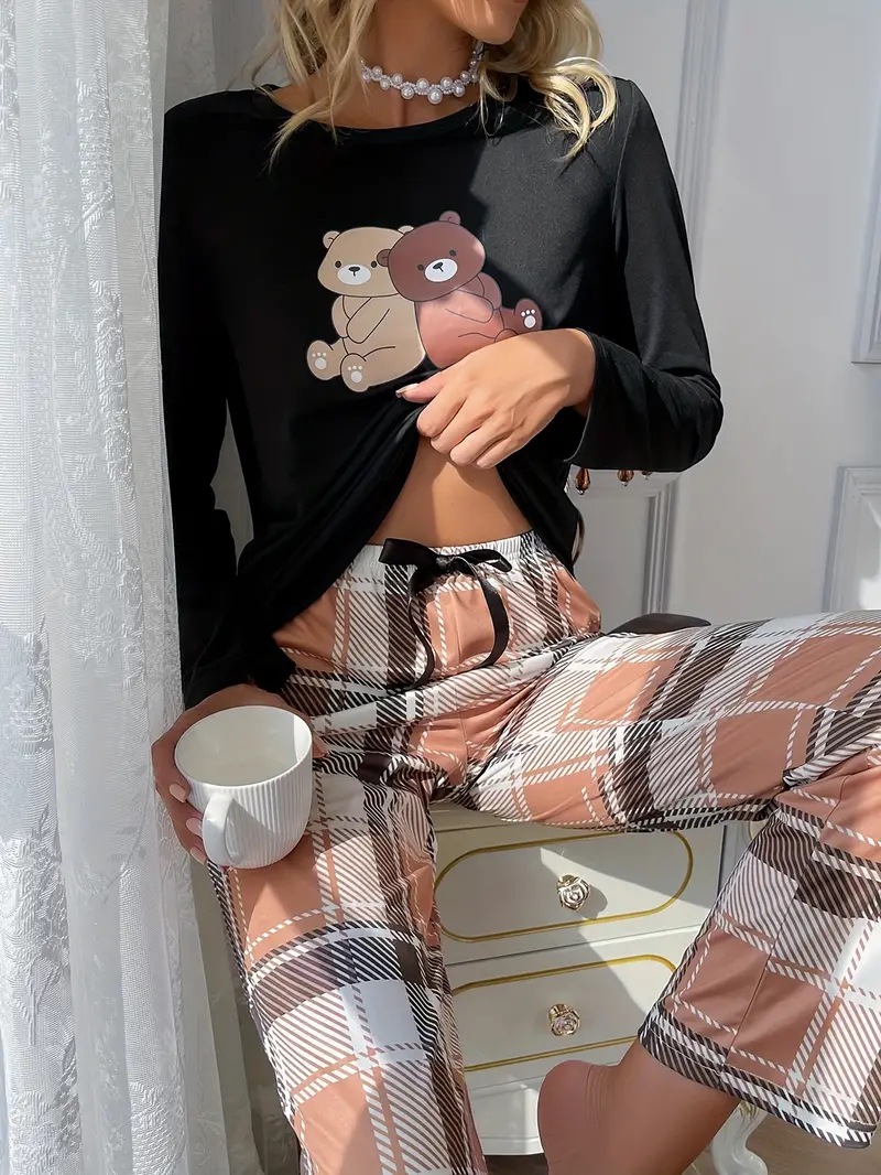 Transfronterizo Amazon AliExpress Ropa a domicilio europea y americana Conjunto de pijamas de otoño e invierno Pantalones a cuadros estampados de manga larga de dos piezas
