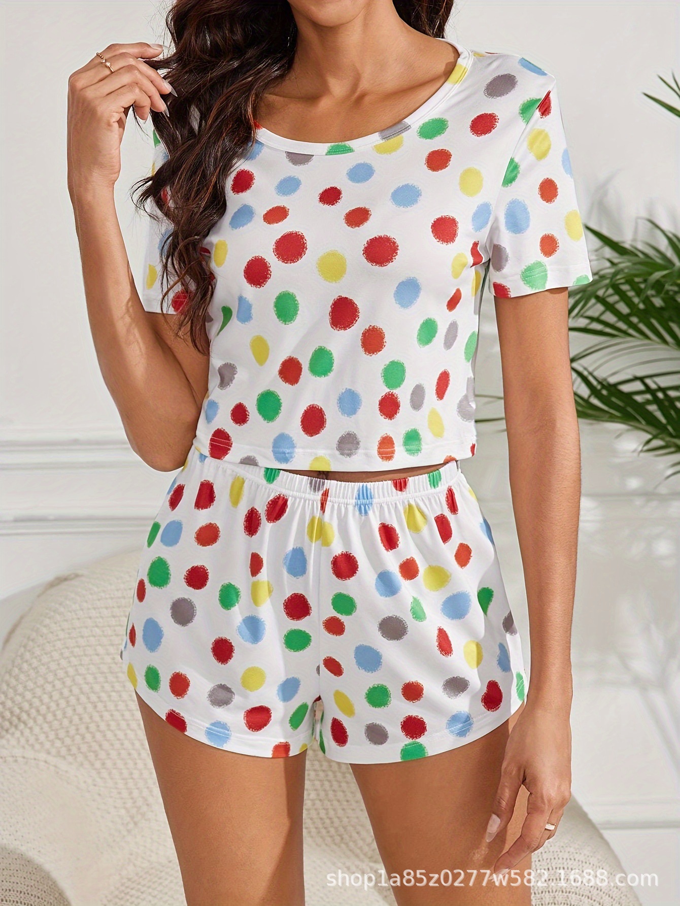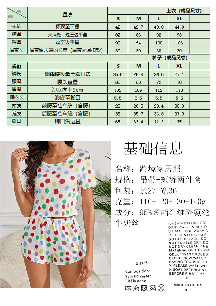 Nuevo pijama de lunares de manga corta de color transfronterizo Traje de servicio a domicilio informal de verano Pantalones cortos de mujer Moda de Amazon
