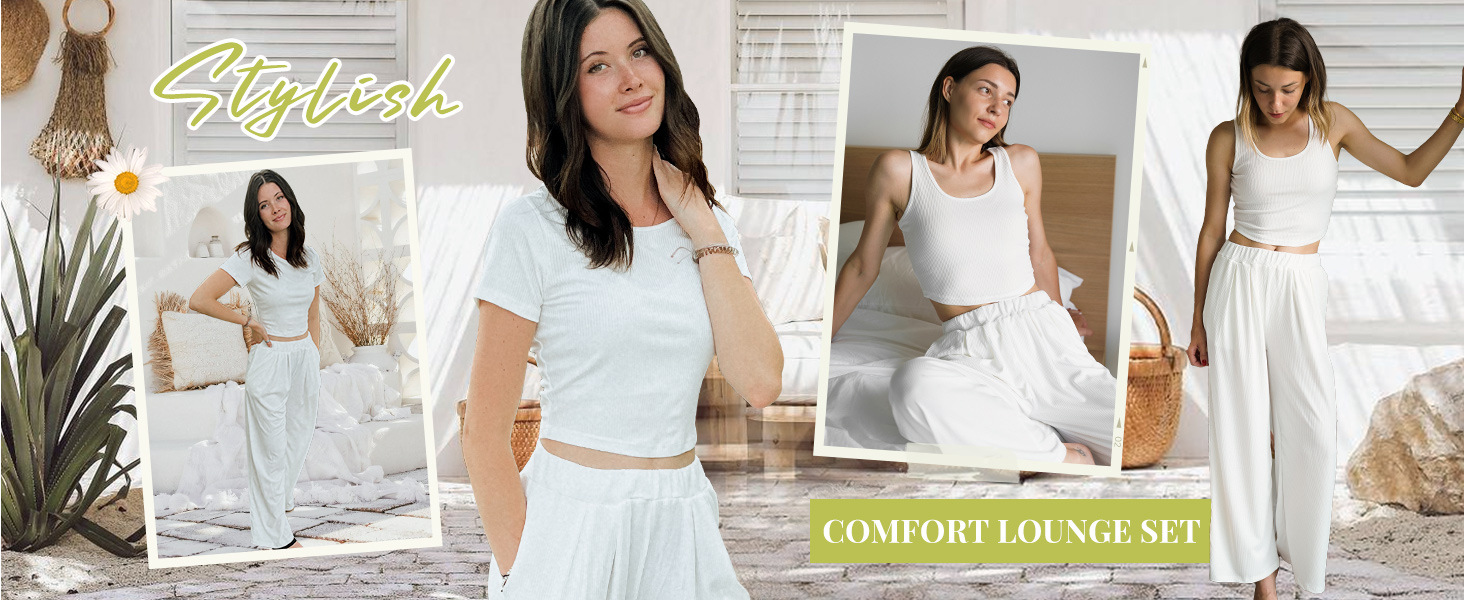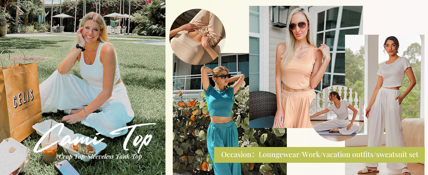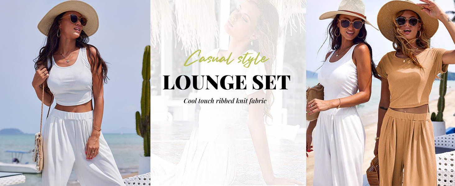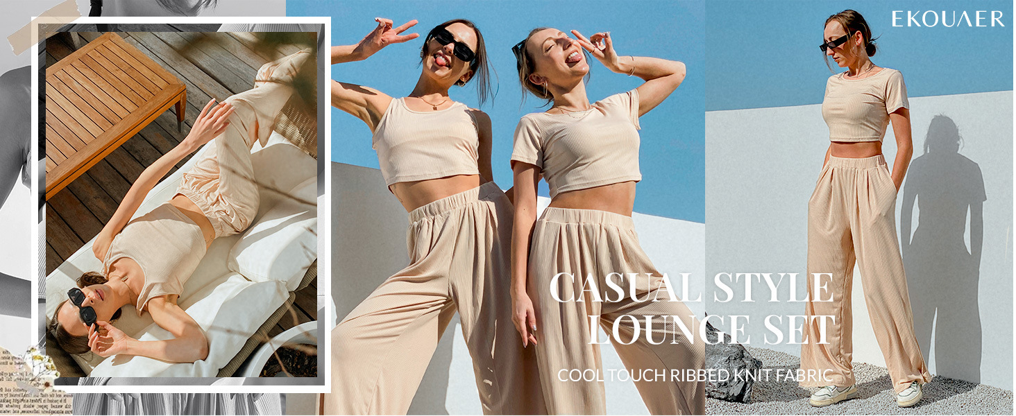 Traje deportivo de ocio de todo fósforo de moda europea y americana para mujer 20224 camisola de color sólido de verano pantalones anchos de dos piezas