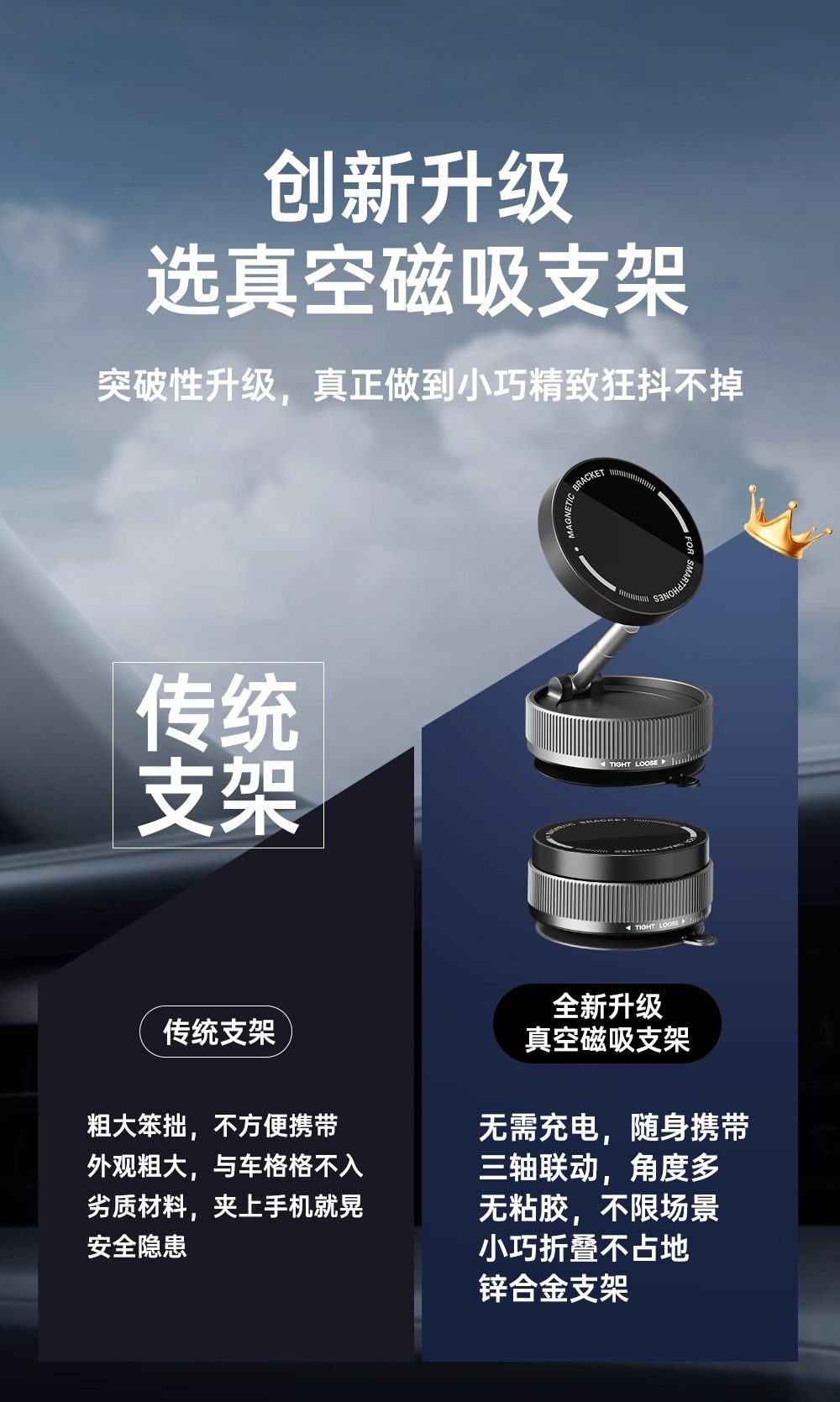 | Colores | Modelo superior negro de tres ejes [adsorción al vacío giratoria de 360 °] aleación plegable mil veces succión teléfono móvil universal★0 Carga★0 pegamento residual,Modelo de actualización de tres ejes blanco [Adsorción de vacío giratoria de 360 °] Teléfono móvil de succión universal★0 Carga★0 pegamento residual,[Recomendado por millones de ciclistas * K007 Obsilium Black] Soporte para teléfono móvil magnético al vacío * Con liberación y succión * Sin rastro,[Recomendado por millones de ciclistas * K007 Xingyue White] Soporte magnético de vacío para teléfono móvil * Con liberación y succión * Sin rastro,Modelo básico negro [Adsorción bidireccional] Vientiane girando diez veces el teléfono móvil de succión universal★0 Carga★0 pegamento residual |
