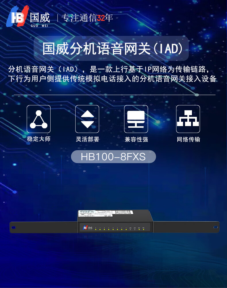 Guowei IP Voice Gateway HB100-8S Internet Phone 8 Prophone Protocolo SIP Puerta de enlace IAD Transferencia SIP