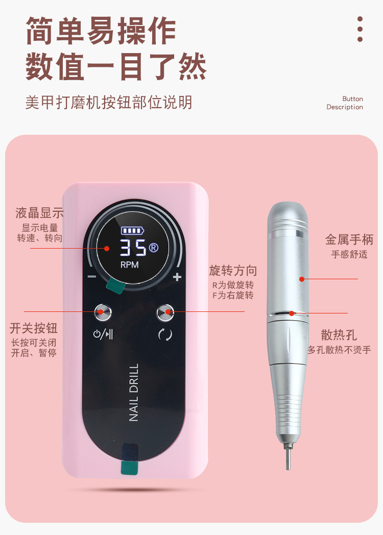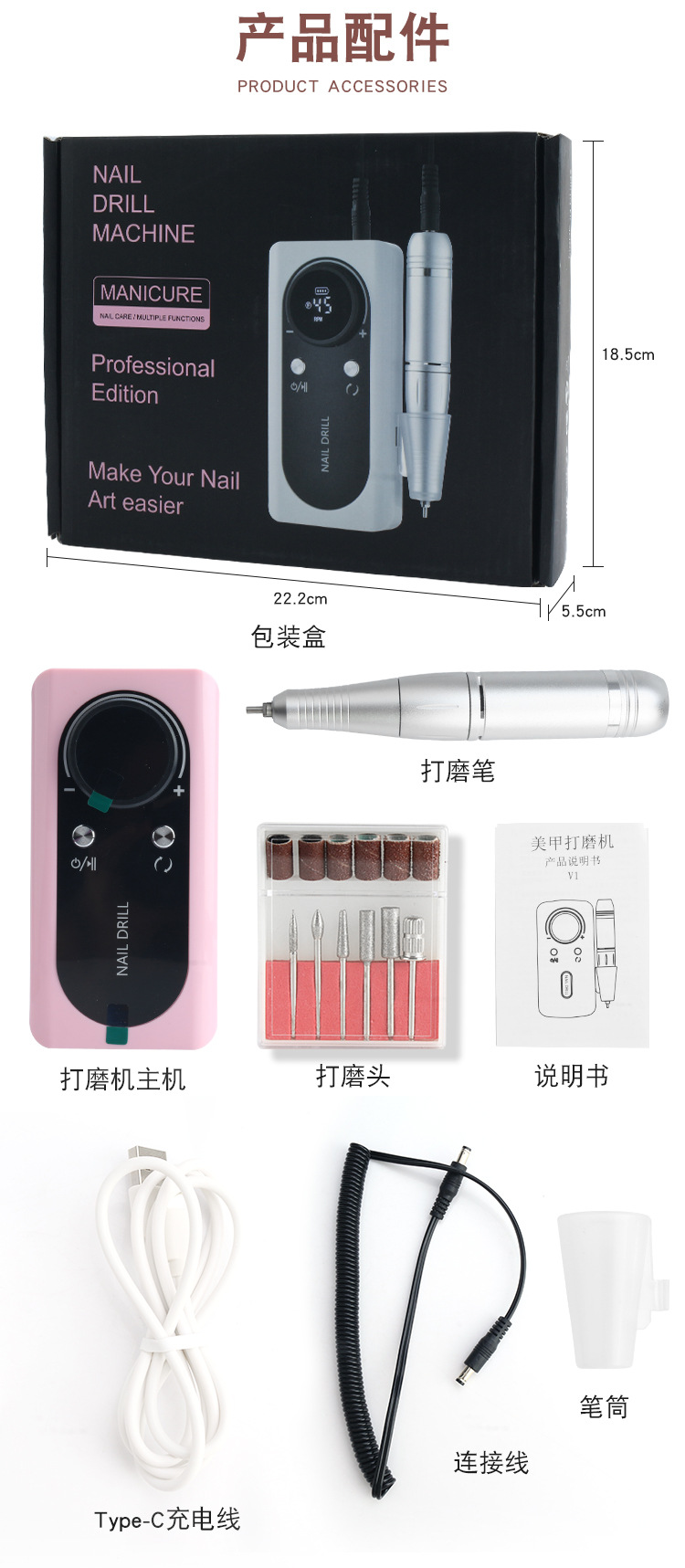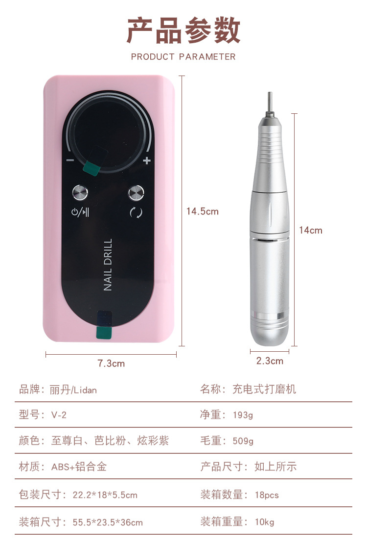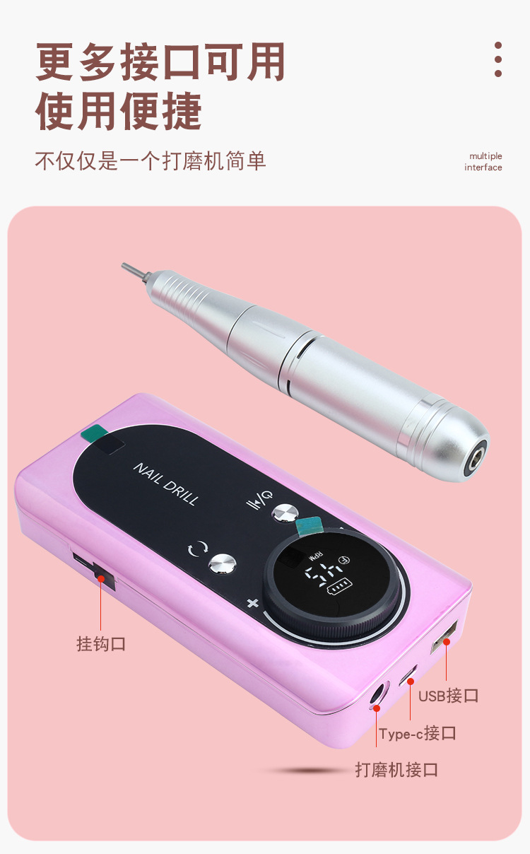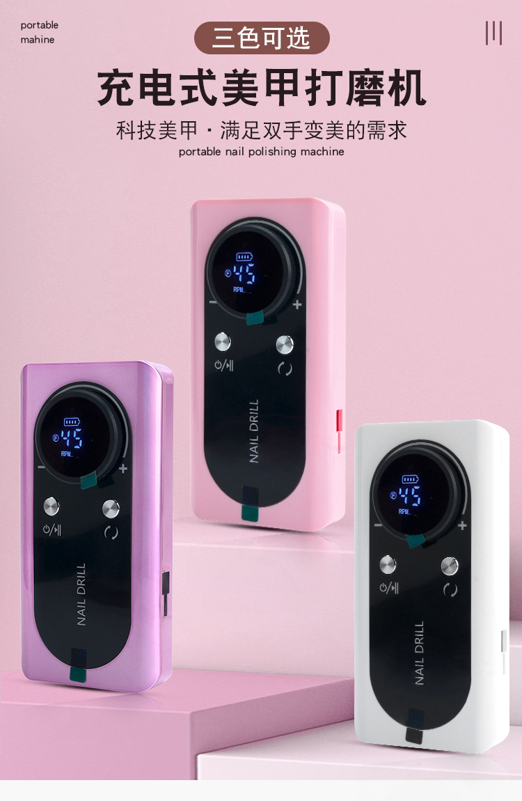 Nueva lijadora de uñas recargable transfronteriza, lijadora de uñas portátil, lijadora de uñas desmontadora