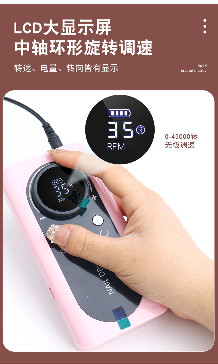| Amoladora de uñas | Nueva lijadora de uñas transfronteriza 45000 rpm recargable portátil rectificador de uñas pulido profesional |