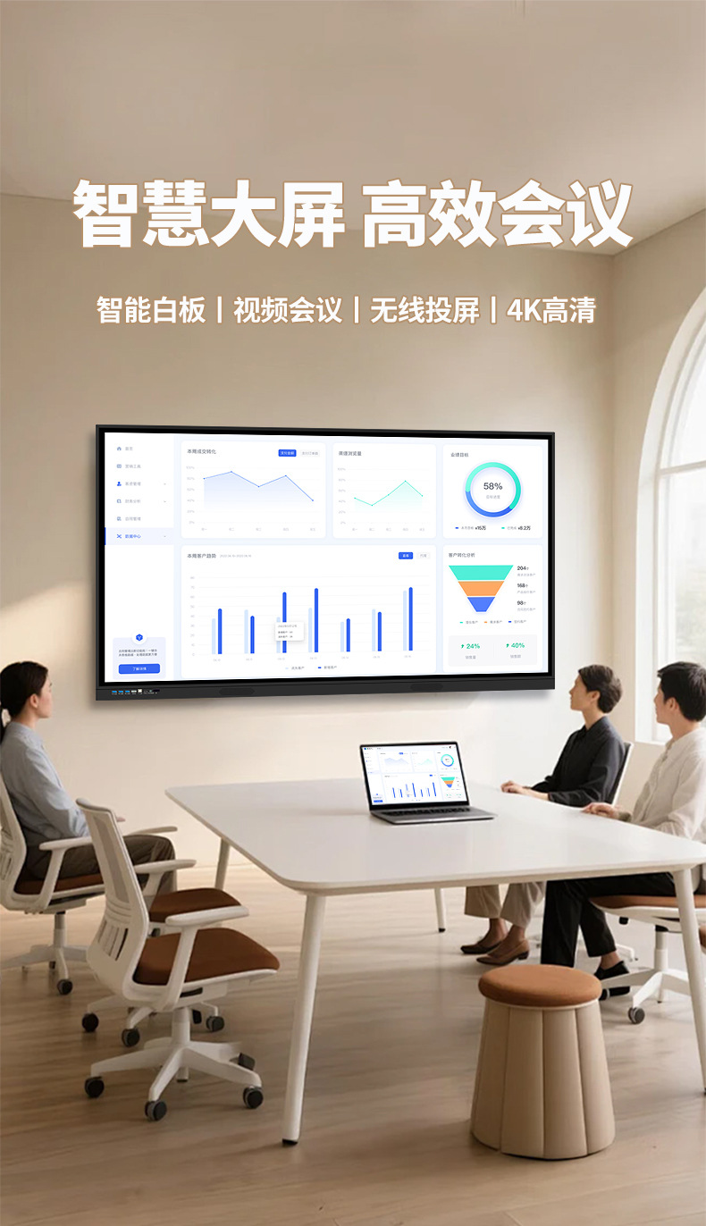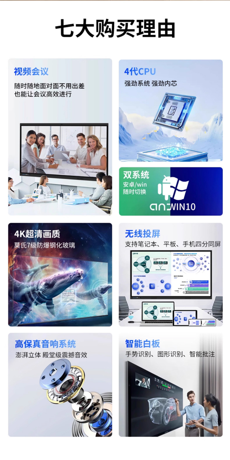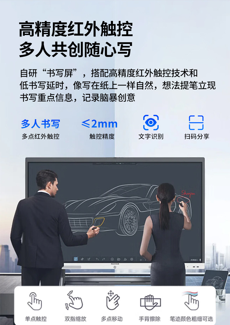 Pantalla táctil interactiva tipo pizarra multimedia todo en uno Shiji 4K ultraclarita para enseñanza y conferencias, ideal para oficinas inteligentes.
