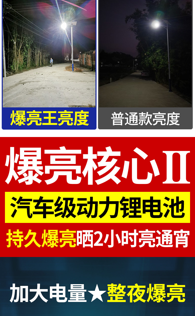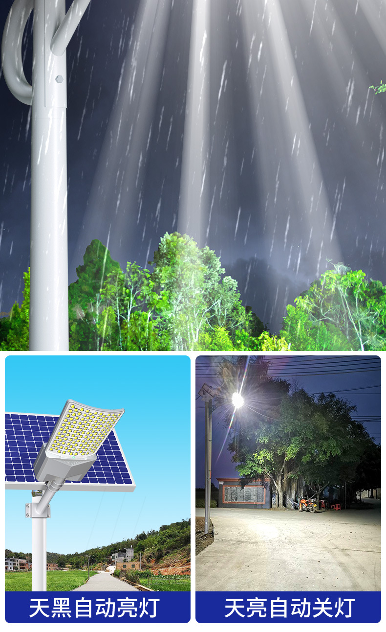 Luz de calle solar, luz exterior, súper brillante, 6 metros de alta potencia, luz de calle led, linterna, luz fuerte, luz del día, negro automático