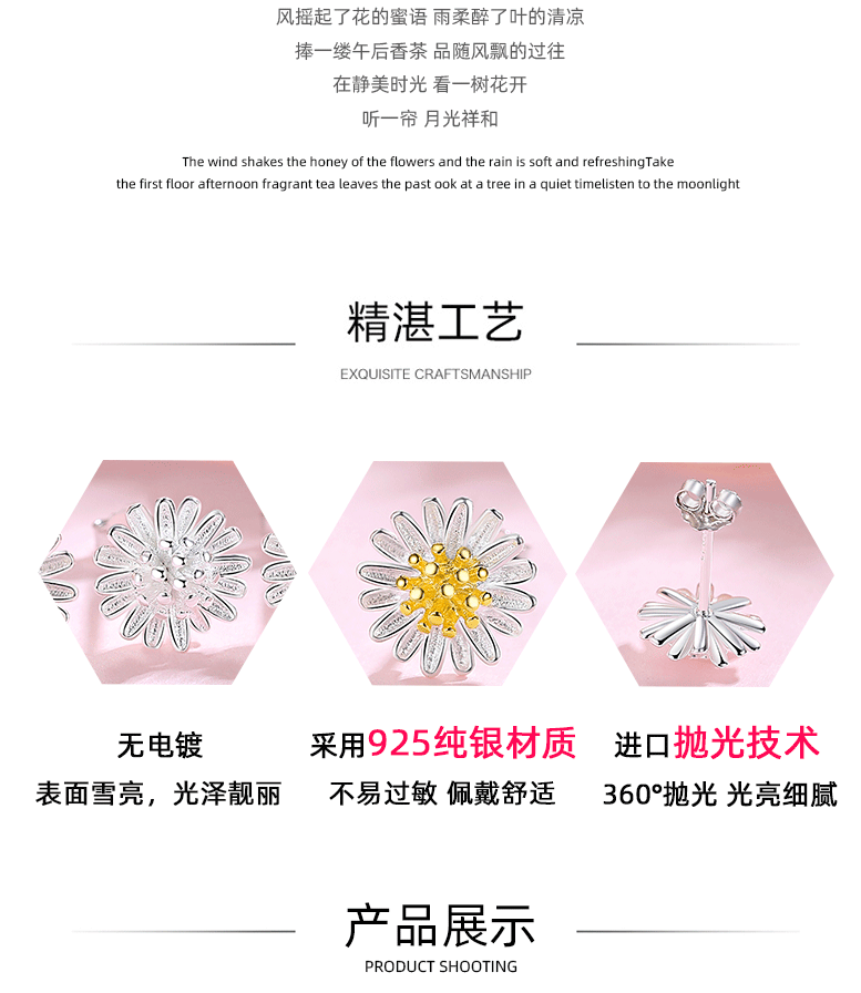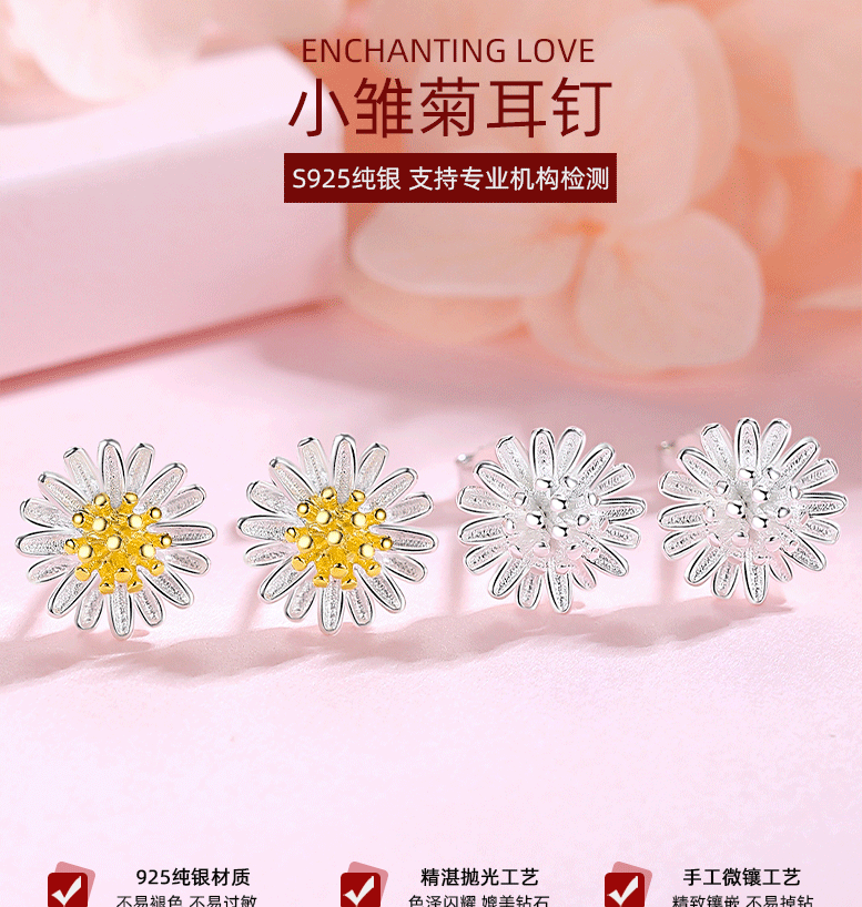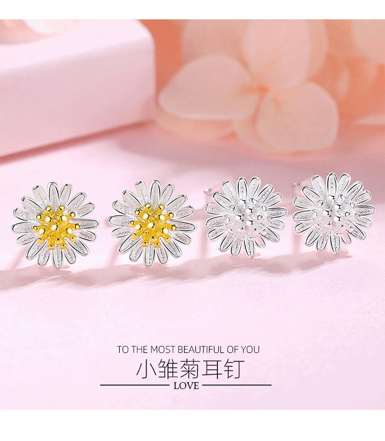 Shengli 925 pendientes de joyería de plata 2021 nueva moda Daisy pendientes de plata de ley simple entrega de una pieza para mujer