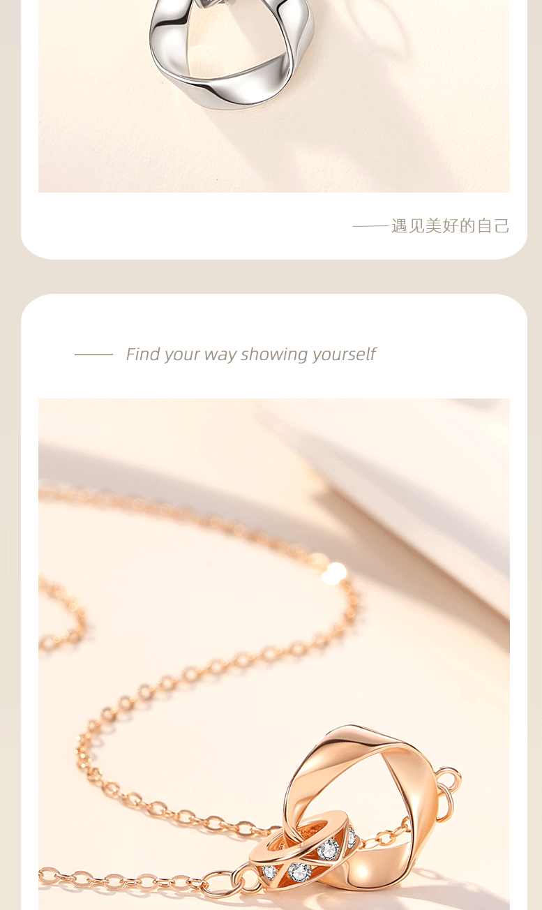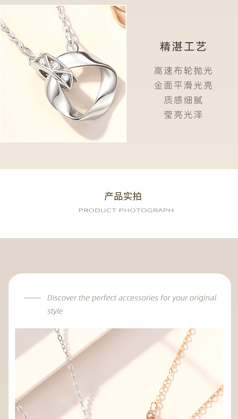 Estilo coreano Mobius anillo S925 plata esterlina nicho collar anillo de moda doble anillo diamante plata esterlina collar al por mayor
