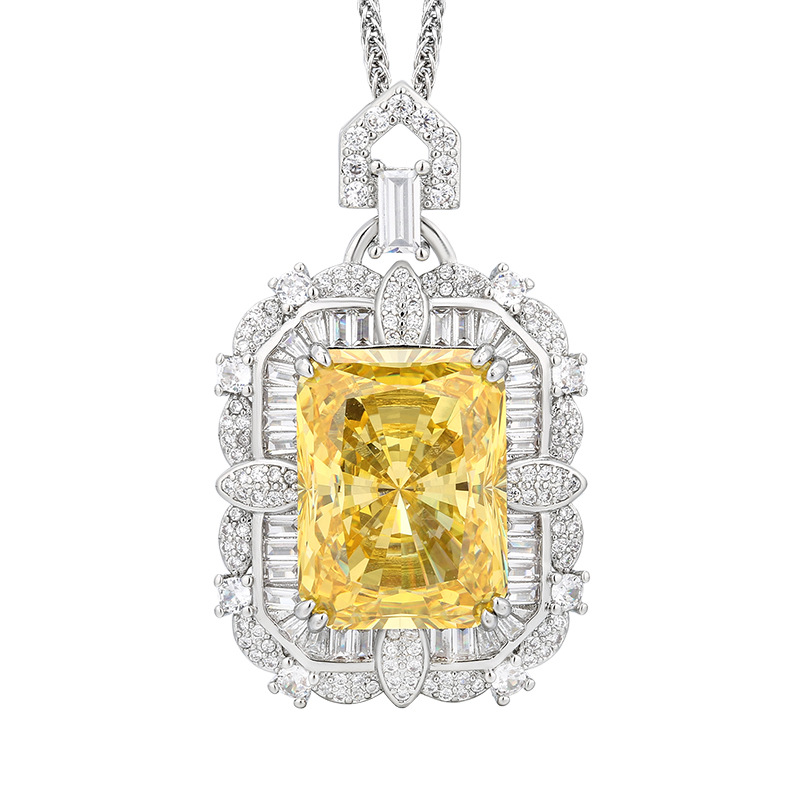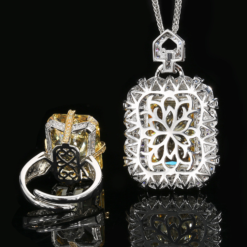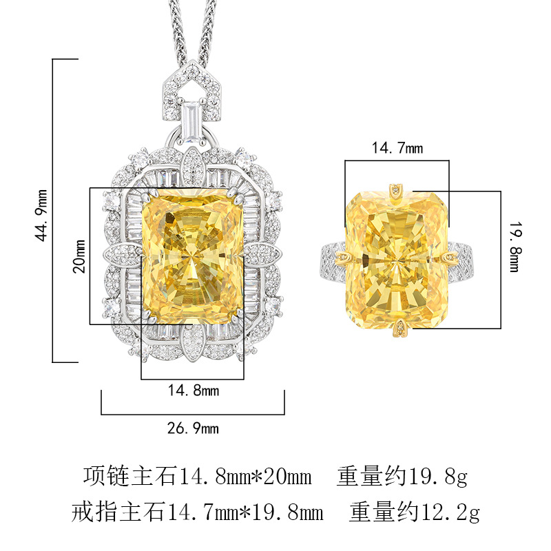 Otoño e invierno nuevo estilo Zhuangsheng conjunto de joyas Reden corte de diamante amarillo conjunto de colgante piedra principal 15*20 al por mayor