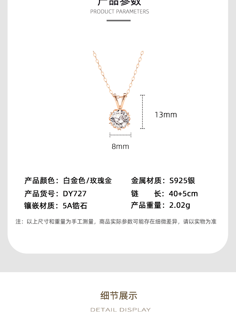 | Color | DY727 oro blanco con cadena,DY727 oro rosa con cadena |