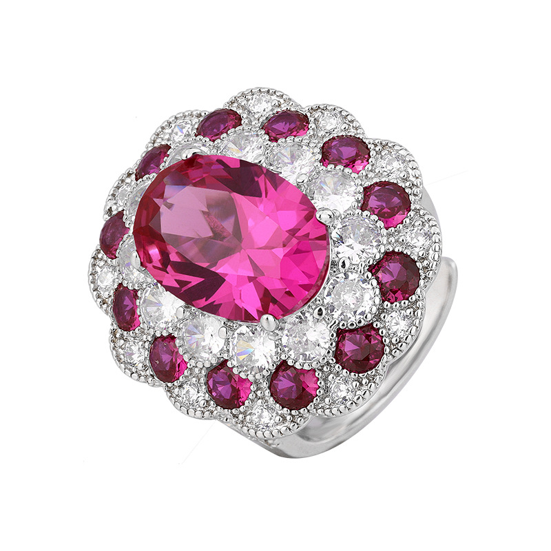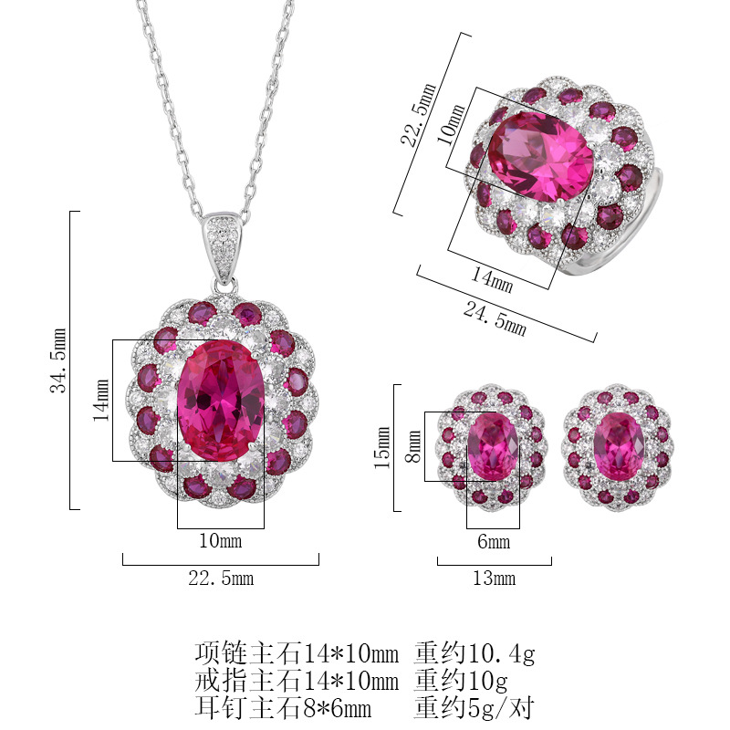Otoño e invierno Nueva Zhuang Sheng joyas de cobre inferior chapado en oro simulación temperamento corindón rojo traje en forma de huevo 10*14-6*8