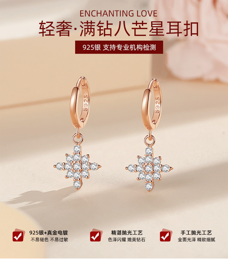 S925 plata ocho Awn estrella pendientes de diamante de las mujeres-incrustado diamante completo estrella moda luz pendientes de estilo de lujo joyería de plata al por mayor